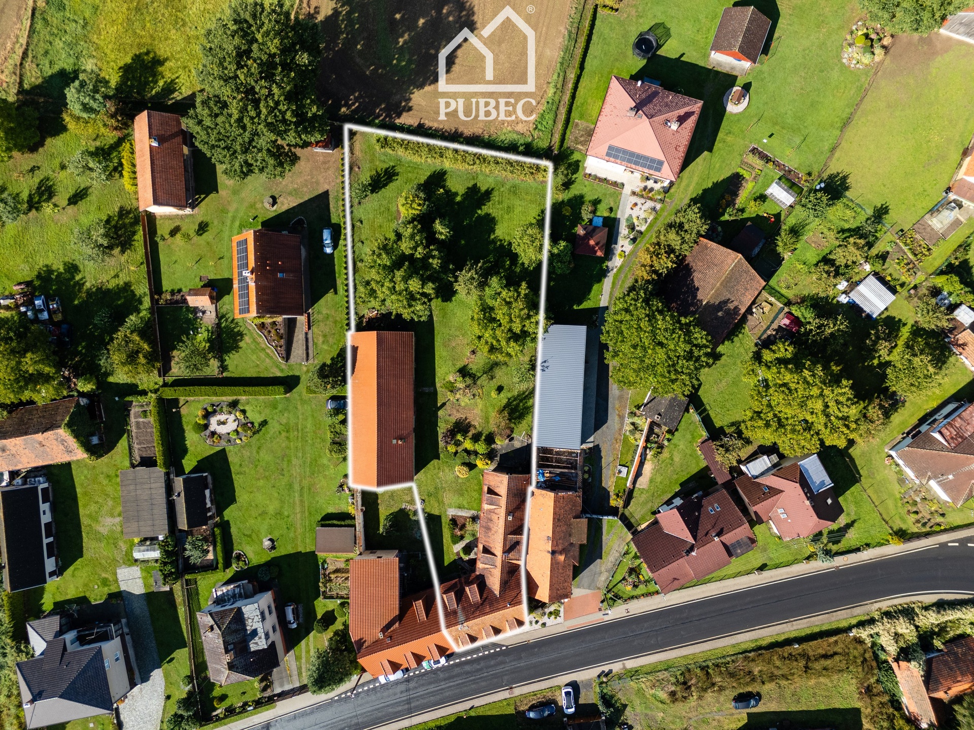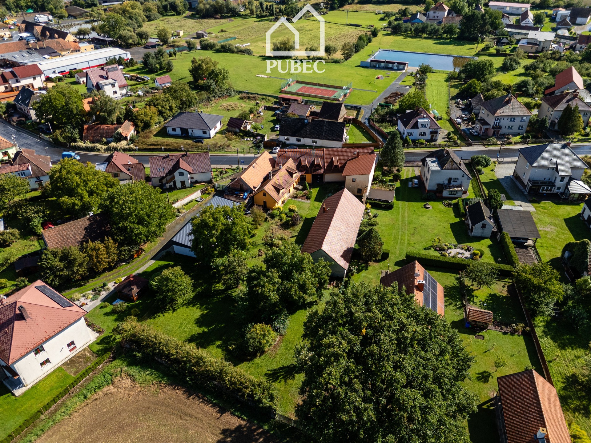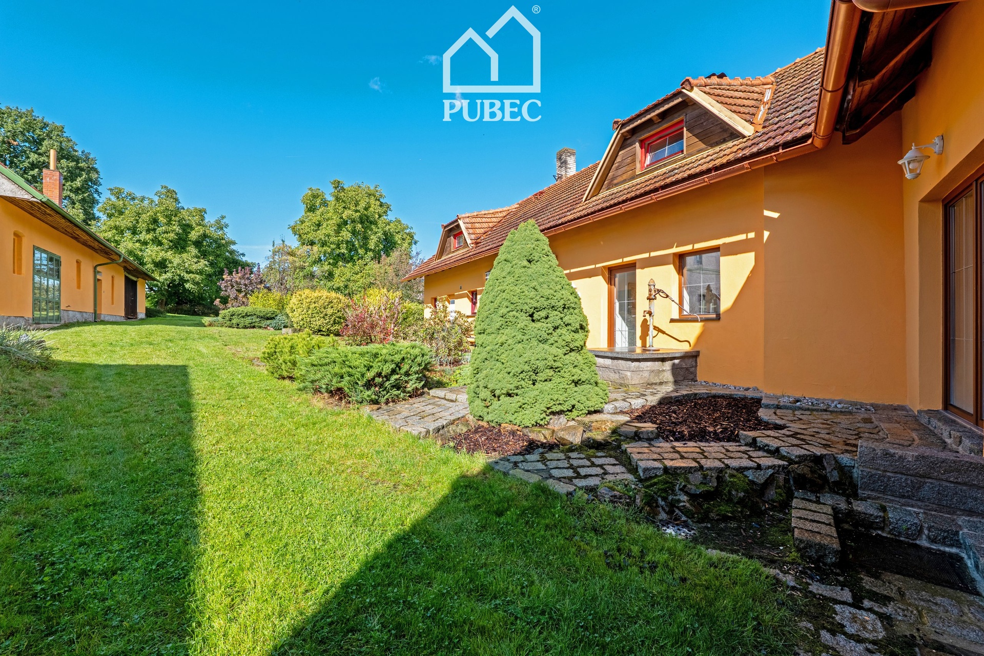 Usedlost sousedí zahradou s dalším rodinným domem a nabízí tak ideální kombinaci venkovské atmosféry a komfortního bydlení v dosahu města.
