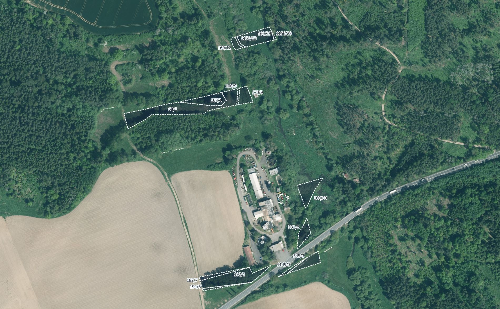 Součástí prodeje je celkem 31 parcel o různém charakteru využití. Celková výměra všech pozemků činí 39 113 m, z toho největší podíl tvoří orná půda (24 177 m), dále trvalý travní porost (10 405 m).