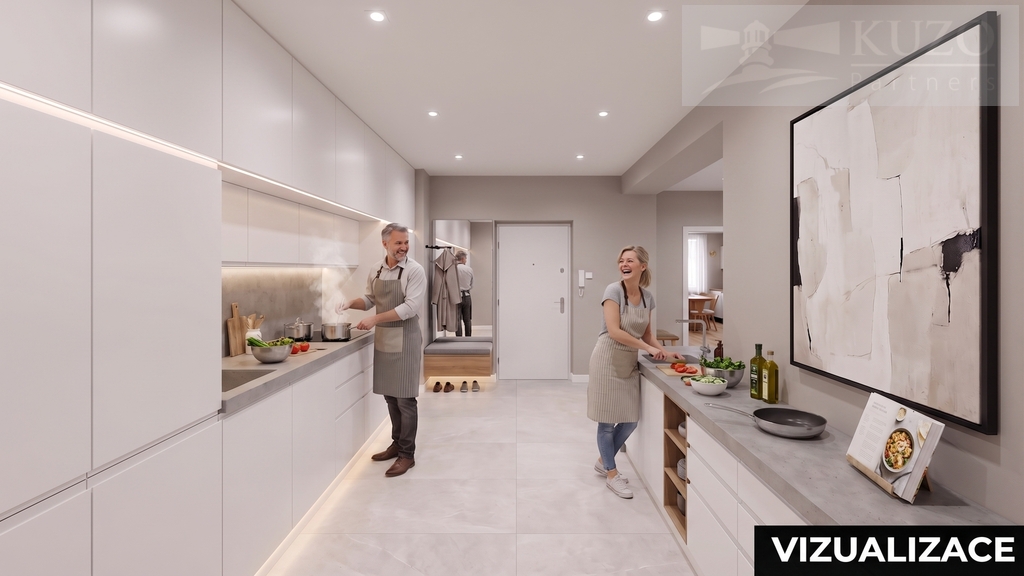 Byt je v poctivém původním stavu, což je jeho největší deviza. Neplatíte za cizí rekonstrukci, ale investujete do vlastní vize. Díky velkorysým rozměrům obou pokojů (cca 24 m2 a 20 m2) a chytrému uspořádání chodeb se byt přímo nabízí k přestavbě na moderní a světlé 3+kk. V chodbě se navíc nachází tři vestavěné komory, které po modernizaci zajistí nadstandardní množství úložného prostoru, nebo je třeba nahradíte velkou kuchyňskou linkou.