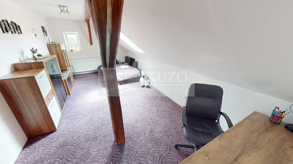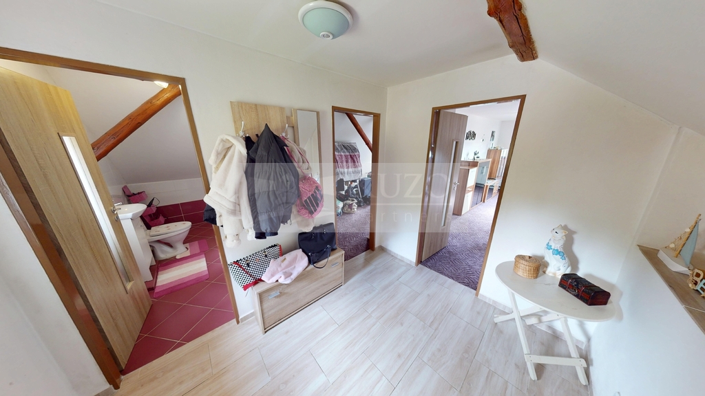 2. patro: Nabízí menší koupelnu s WC a přípravou na vanu či sprchový kout a dvě velmi prostorné ložnice, poskytující dostatek soukromí.