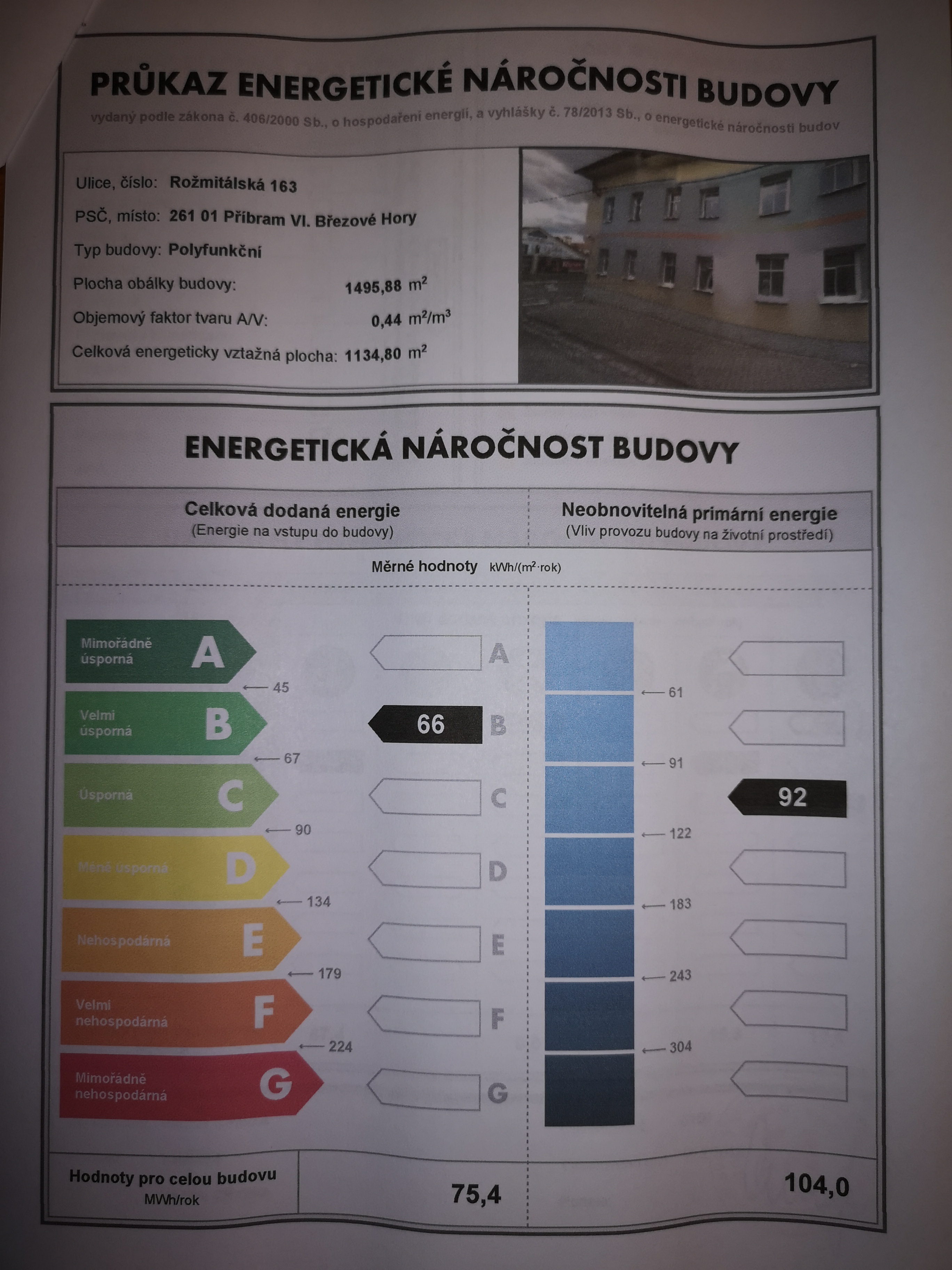 Byt je volný ihned k dispozici. Energetický štítek budovy ve třídě B.