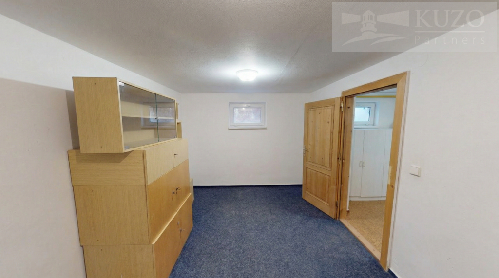 Velkorysý prostor: Dominantou je obrovská obytná místnost, doplněná o další 3 pokoje (jeden z nich není napojen na ústřední topení a je vhodný spíše jako dílna, sklad nebo k vytápění samostatným přímotopem).