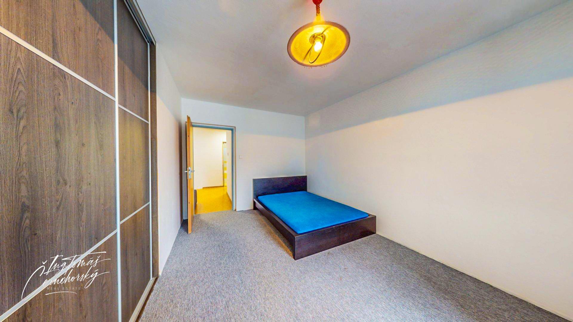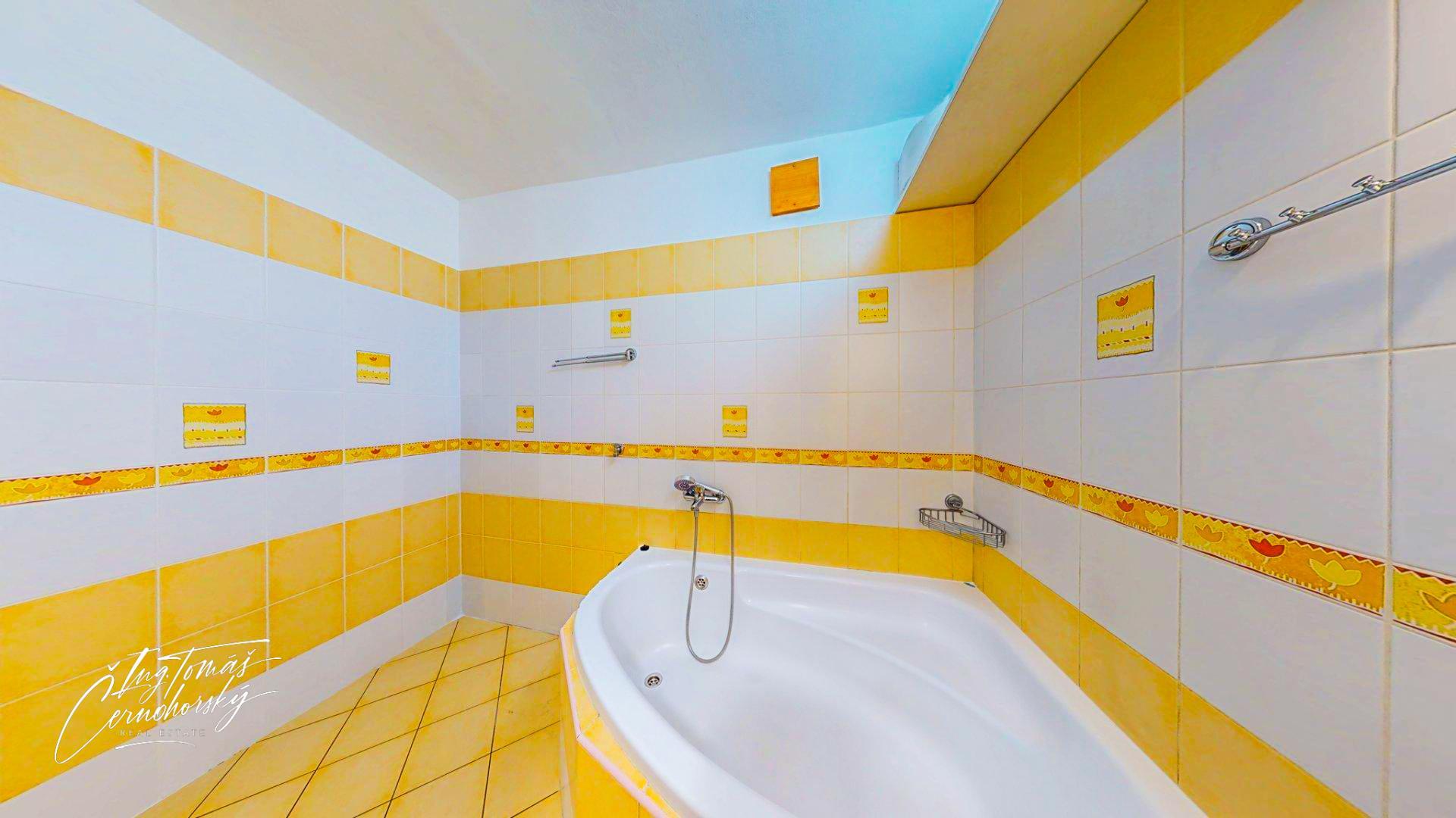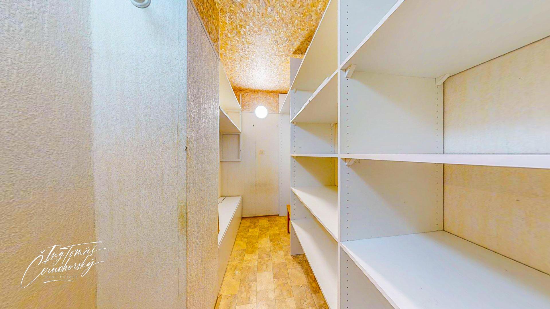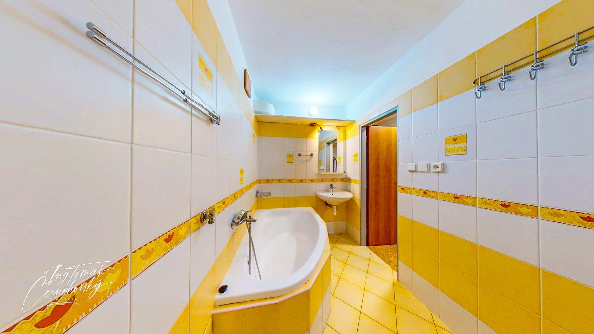 Součástí bytu je koupelna, samostatné WC, sklepní kóje a také další samostatná místnost, kterou lze využít jako šatnu, pracovnu či domácí kancelář.