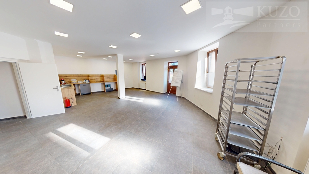 Multifunkční prostor s kolaudací: Prostor je zkolaudován jako výroba cukrařina a pekařina s možností rozšíření o lahůdky a teplou kuchyni. Je zde také příprava pro obchodní část (tzv. take away). Můžete zde vytvořit prodejnu s pekárnou, cukrárnou, nebo rychlé občerstvení (pizzerie, kebab, čína a další).