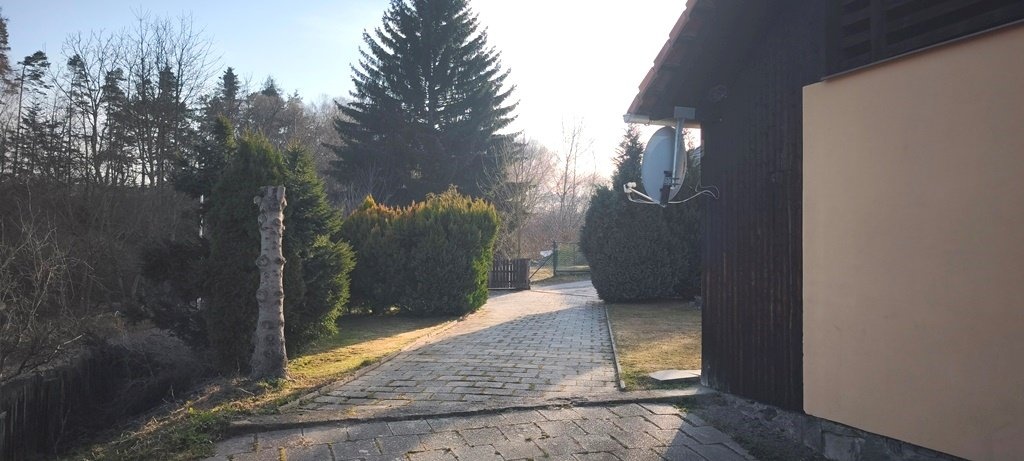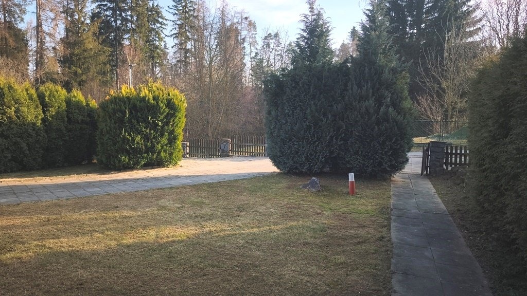 Zahrada uvnitř které je dům situován je rovinatého charakteru, zatravněná bez pěstebních záhonů a s okrasnými jehličnany, které tvoří optickou "bariéru" od příjezdové obecní komunikace. Příjezdová i spojovací cesta vč. park. stání uvnitř pozemku je dlážděná.
