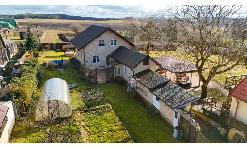 V exkluzivním zastoupení si Vám dovolujeme představit rodinný dům o dispozici 5+kk v malé vesnici Malé Dvorce v Plzeňském kraji, nedaleko města Přimd a, jíž je od roku 1980 součástí. Nemovitost, která je umístěna na vlastním pozemku o výměře 1161 m2, je postavena systémem Durisol, je dvoupodlažní, částečně podsklepená. Na pozemku najdete dvě studny, a to kopanou, která se využívá na zalévání zahrady, napouštění bazénu atd. a vrtanou, která je zavedena do domu, taktéž je na pozemku přípojka na veřejný vodovod, dále zde najdete zděnou garáž pro jedno auto, velký skleník a drobné zděné přístavky v podobě kůlny, dílny, venkovní toalety. Do domu je přivedena elektřina a kanalizace je řešena jímkou na vývoz. Vytápění a teplou vodu zajišťuje plynový kondenzační kotel. Energetický štítek budovy je označen hodnotou D (124 kWh/m2.rok). Nemovitost je posazena do velké zahrady, kde se nachází, mimo vzrostlé plodící stromy i pěkné zázemí pro letní posezení s přáteli v podobě grilu na malé terase nebo částečně zapuštěný venkovní bazén. Prostorná zahrada přímo vybízí k velkým záhonům na pěstování zeleniny a ovoce či k chovu drobného domácího zvířectva. Veškerou občanskou vybavenost najdete v cca 5 km vzdáleném městě Přimda. V okolí je dostatek krásné přírody, která vybízí k výletům a cykloturistice.