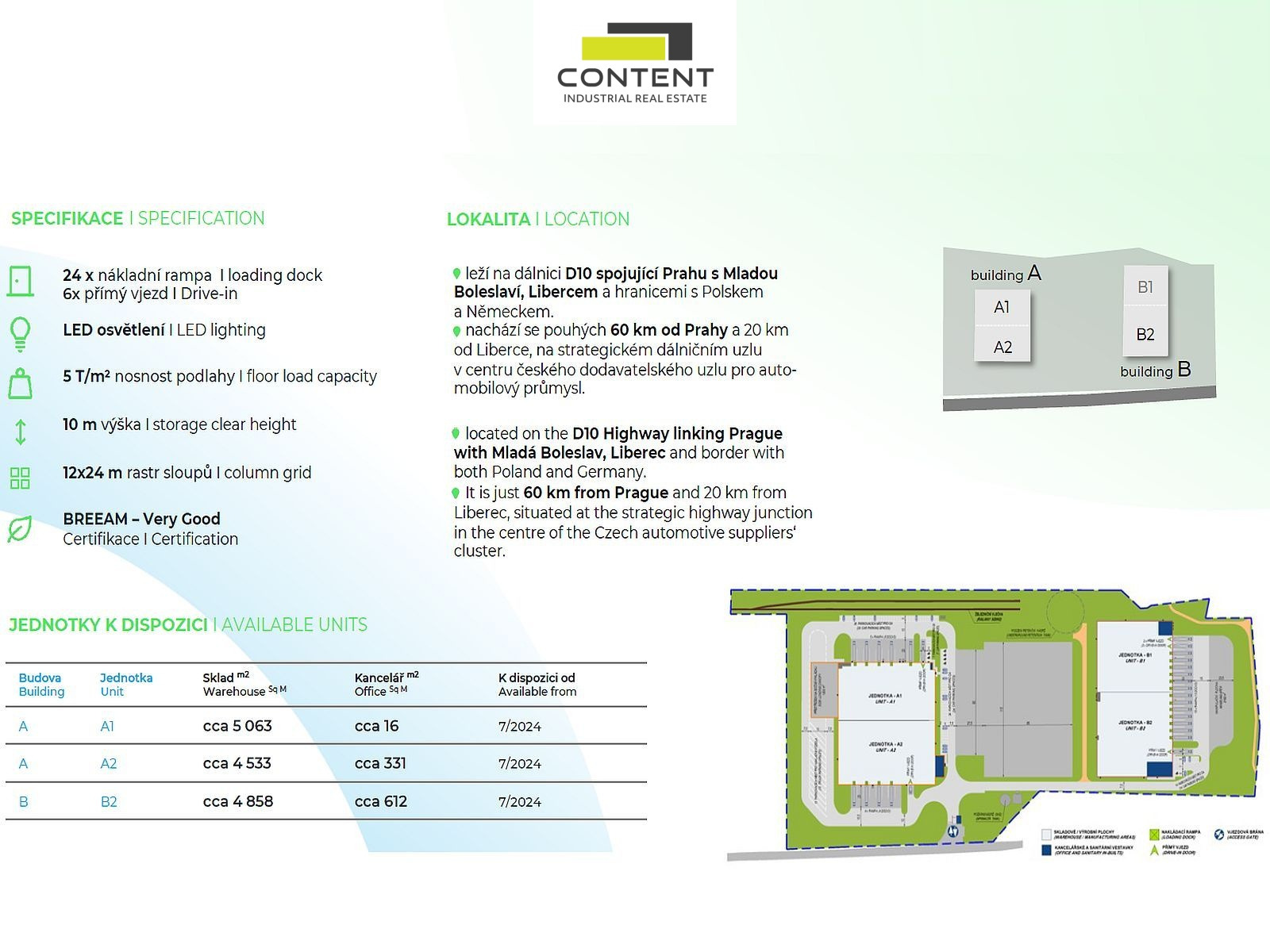 - moderní, úsporná budova s certifikátem udržitelnosti BREEAM - "very good",