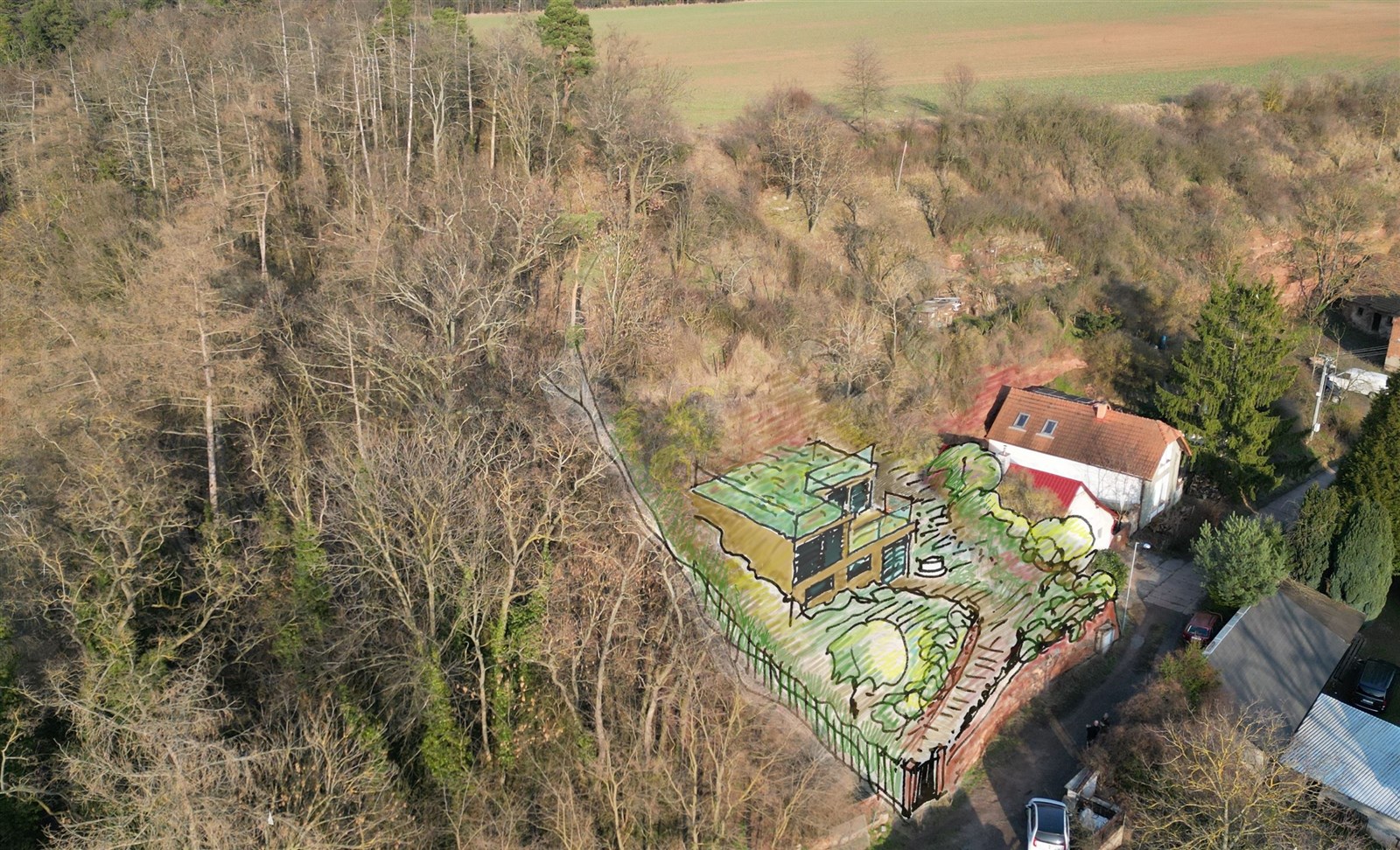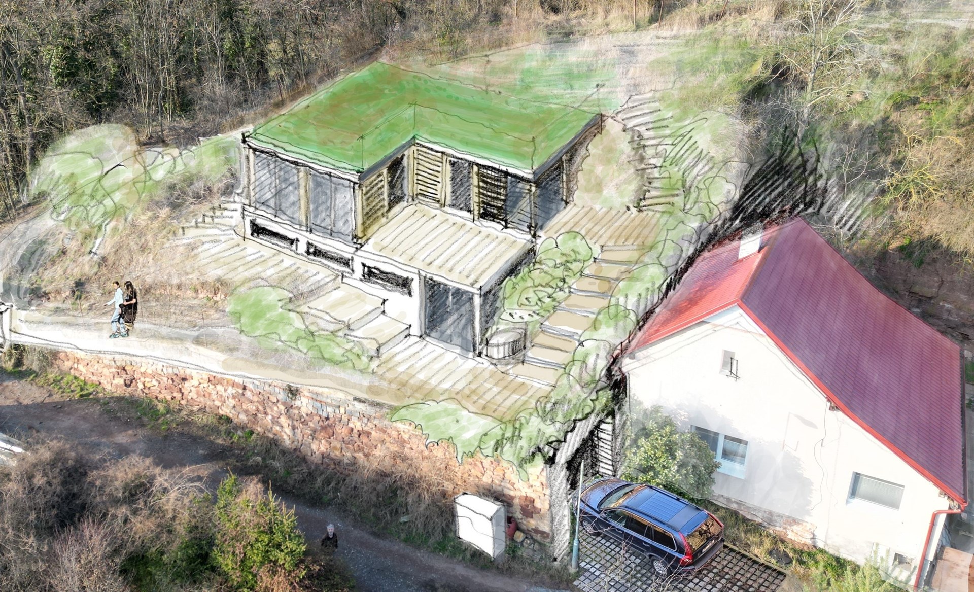 Pozemek je situován ve svahu, součástí nabídky je studie možné zajímavé realizace, využití svahu pro velkou garáž s technickou místností a skladovacím prostorem, nad garáží a dále ve svahu dům s terasami. Dům s plochou střechou a velkým prosklením nad úrovní všech okolních domů nabízí výjimečné soukromí. Nad domem další část zahrady, využitelné jako zahrádka nebo pro solární panely.