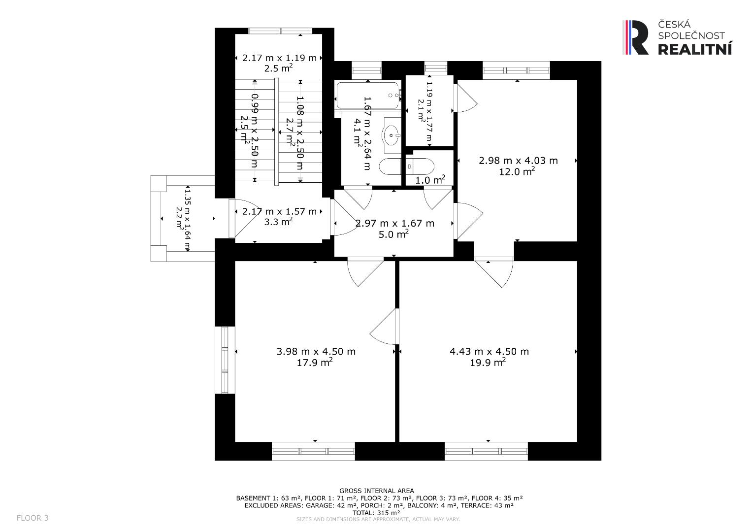 Ve 3.NP je byt 2+1 s užitnou plochou 60 m2 + balkónek 2 m2