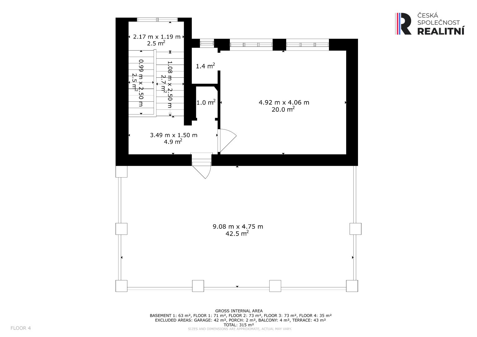 Ve 4.NP je byt 1+kk užitnou plochou 23 m2 + terasa 42 m2