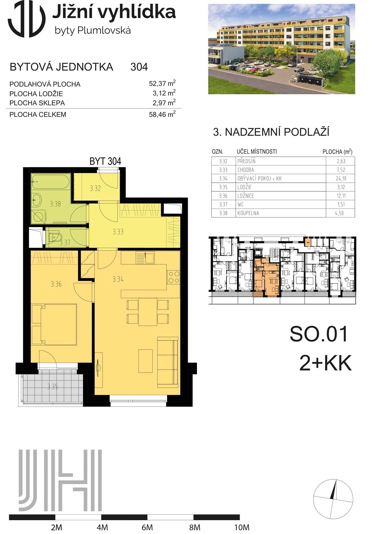Nabízíme k prodeji byty v nově realizovaném projektu „Jižní vyhlídka“. V již zahájené výstavbě bytových domů „Jižní vyhlídka“ v Prostějově na ulici Plumlovská Vám nabízíme byt vel. 2+kk, o celkové podlahové ploše 58,46 m2, umístěný ve 2. patře pětipatrového cihlového domu. Byt je orientovaný na jižní stranu. K bytu náleží sklep na patře o velikosti 3,12 m2, lodžie, komfortní společné prostory s výtahem. Možnost koupě parkovacího místa v přízemí domu za cenu 469.000 Kč. Před domy budou k dispozici parkovací místa na parkovišti. Dům se staví v lokalitě se zástavbou rodinných domů s výhledem do zahrad. Všechny byty splňují náročné protihlukové normy, mají kvalitní výbavu již ve standardu, sádrové omítky, kvalitní sanitu i obklady, vinylové podlahy, podlahové vytápění aj. Možnost výběru materiálu a řešení klientských změn během výstavby. V případě zájmu Vám naše kancelář zajistí exkluzivní financování koupě bytu hypotečním úvěrem. Výstavba již probíhá a dokončena bude v 4.Q roku 2026. Více info na našem webu. PENB – A.