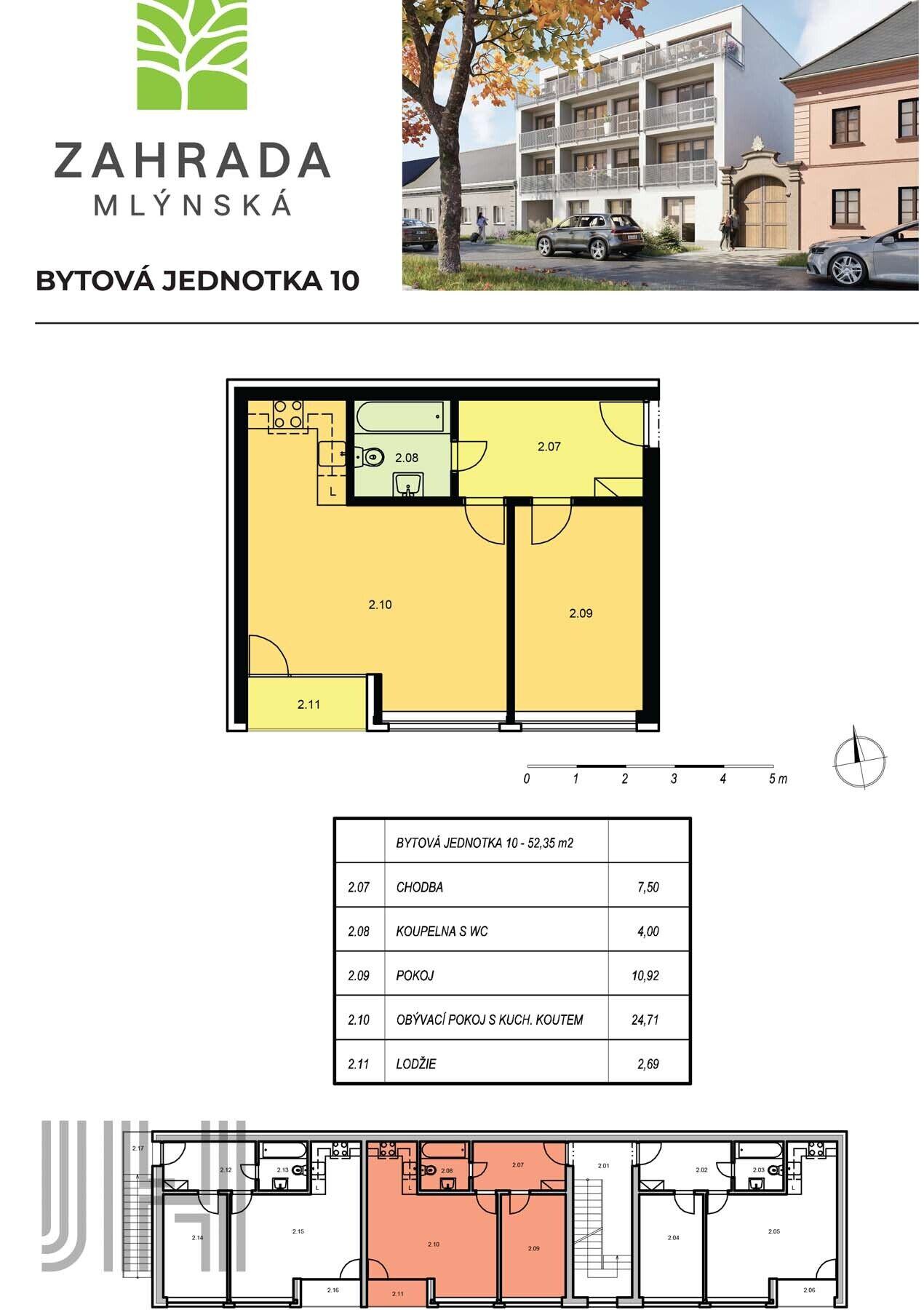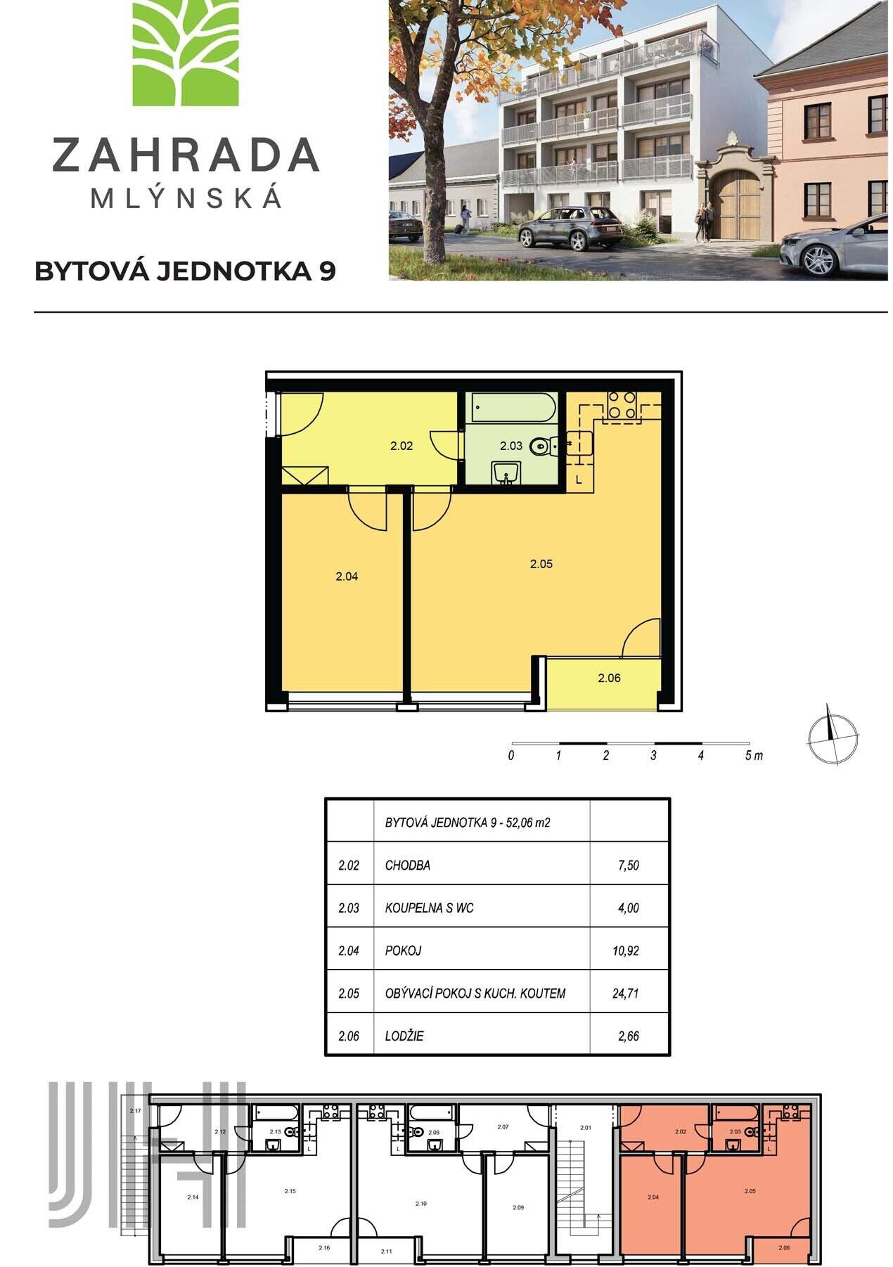 Prodej bytu 2+kk ve výstavbě v projektu Zahrada Mlýnská