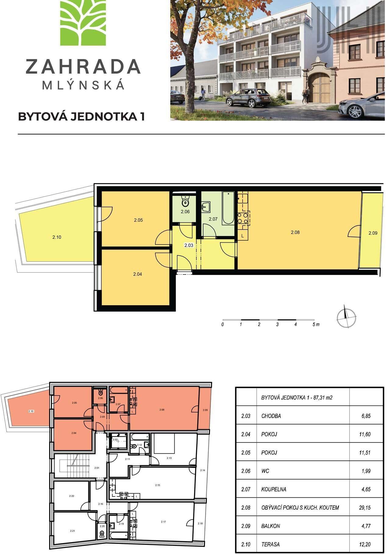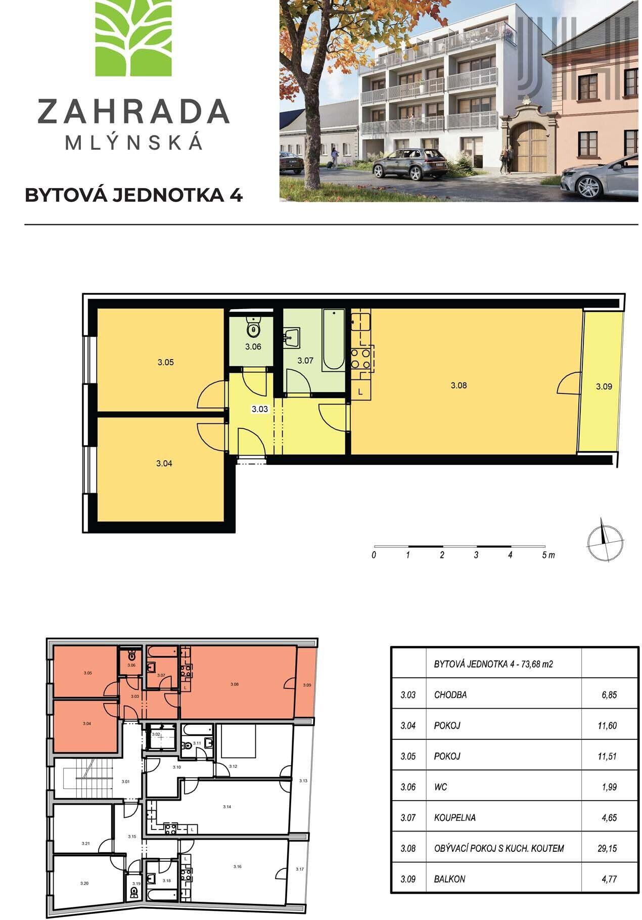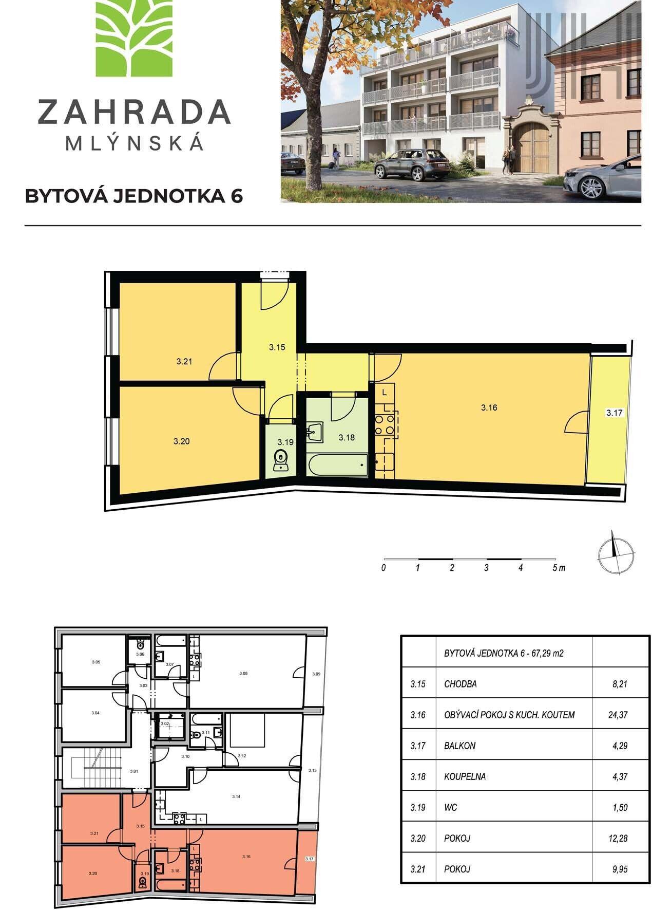 Prodej bytu 3+kk ve výstavbě v projektu Zahrada Mlýnská
