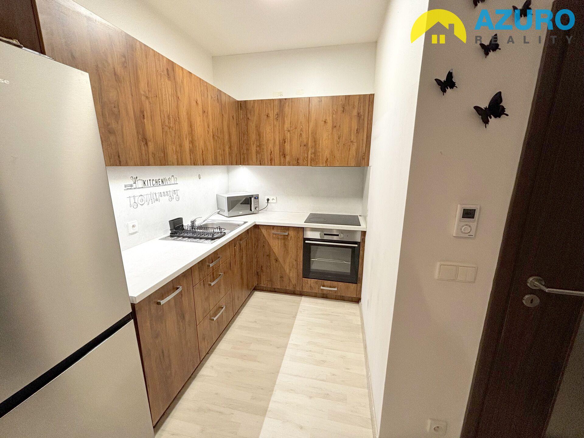 V bytě praktická kuchyňská linka s vestavěnými spotřebiči (indukční varná deska, el. trouba, digestoř), prostorná koupelna s vanou, toaleta je samostatná, pokoje jsou neprůchozí, z obývacího pokoje je vstup na lodžii. Byt se pronajímá bez dalšího vybavení. Podlahy plovoucí / dlažba. K bytu náleží sklepní kóje, před domem dostatek parkovacích míst.