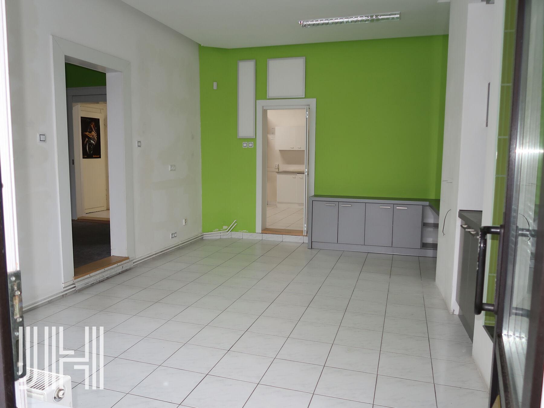 Nabízíme k pronájmu prostory vhodné pro obchod, kancelář či služby (např. kadeřnictví, kosmetika), umístěné v přízemí domu vzdáleného 100 m od Komerční banky, která se nachází v centru města. Prostory o rozloze 68 m2 tvoří 2 místnosti o výměře 50 m2 a zázemí - menší sklad a místnost vhodná na další kancelář, případně skladovací prostor. WC umístěné na chodbě domu, umyvadlo v prostorách. Prostory jsou vytápěny vlastním plynovým ústředním vytápěním, samostatná měřidla elektřiny, plynu i vody, připojení internetu. Prostory byly v minulosti využívány jako prodejna autokosmetiky, svatební salon, či květinářství, sídlo firmy s prezentační místností a kanceláří. K dispozici k převzetí dohodou. Parkování možné před prodejnou, zpoplatněno. V okolí je KB, Česká pošta, Alza, Centrum zdraví aj. PENB – G.