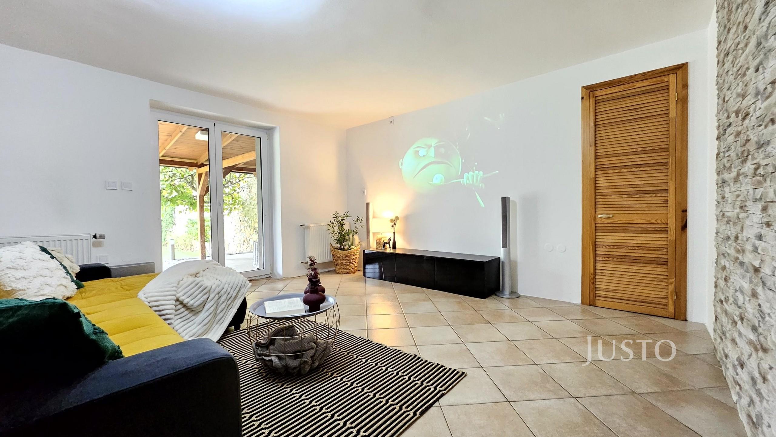 Hned po vstupu do domu vás okouzlí vzdušnost a kreativita interiéru. V přízemí na vás čeká relaxační hala (současní majitelé z ní udělali knihovnu s krbovými kamny –- ideální místo pro útěk před každodenními starostmi). Je tu také místnost se šatnou, která momentálně slouží jako domácí kino – ano, vlastní kino! A technika v domě zůstane, takže si můžete pustit film i bez vybalování krabic. Z místnosti je přímý vstup na terasu a zahradu s bazénem, který už sice nějakou dobu neviděl plavky, ale i tak je to luxusní prvek na zahradní párty.