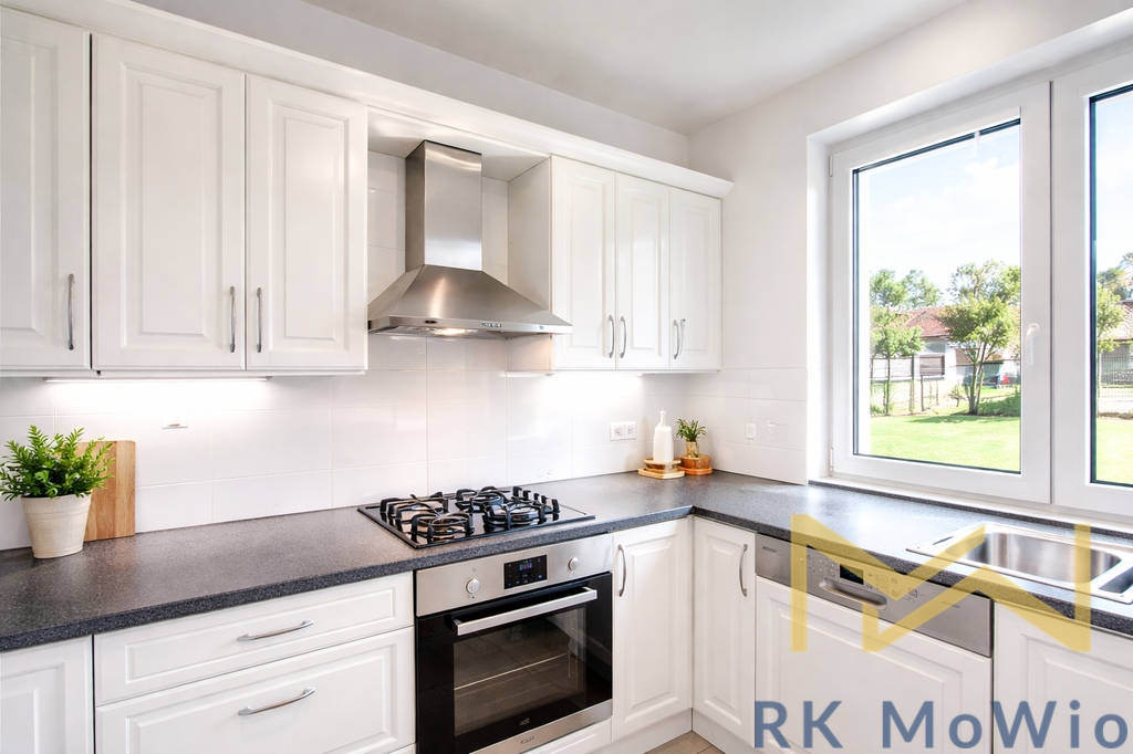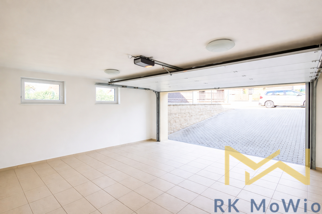 Vybavení domu zahrnuje kuchyňskou linku se spotřebiči (plynová varná deska, elektrická trouba, myčka nádobí, digestoř, lednice s mrazákem), vestavěné skříně, svítidla v celém domě, rozvody pro TV/SAT, telefonní linku a zabezpečovací systém s možností napojení na bezpečnostní agenturu. Podlahy tvoří parkety v obytných místnostech a dlažba v ostatních prostorách. Vytápění je řešeno plynovým ústředním topením. Součástí domu je dvojgaráž.