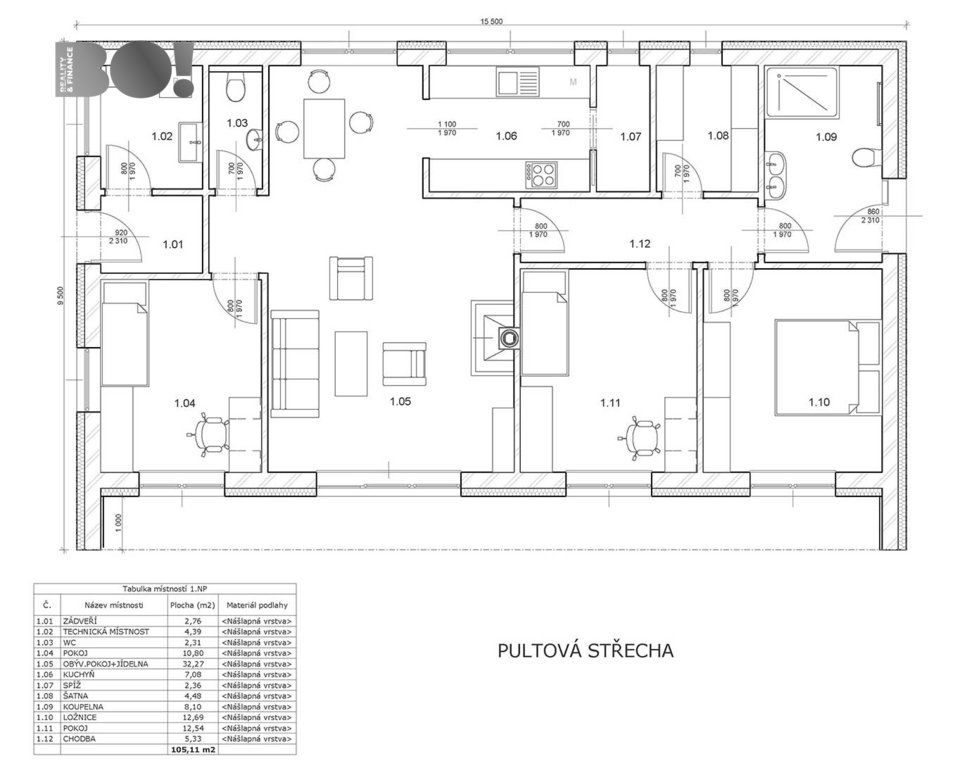 Užitná plocha: 105,11 m²