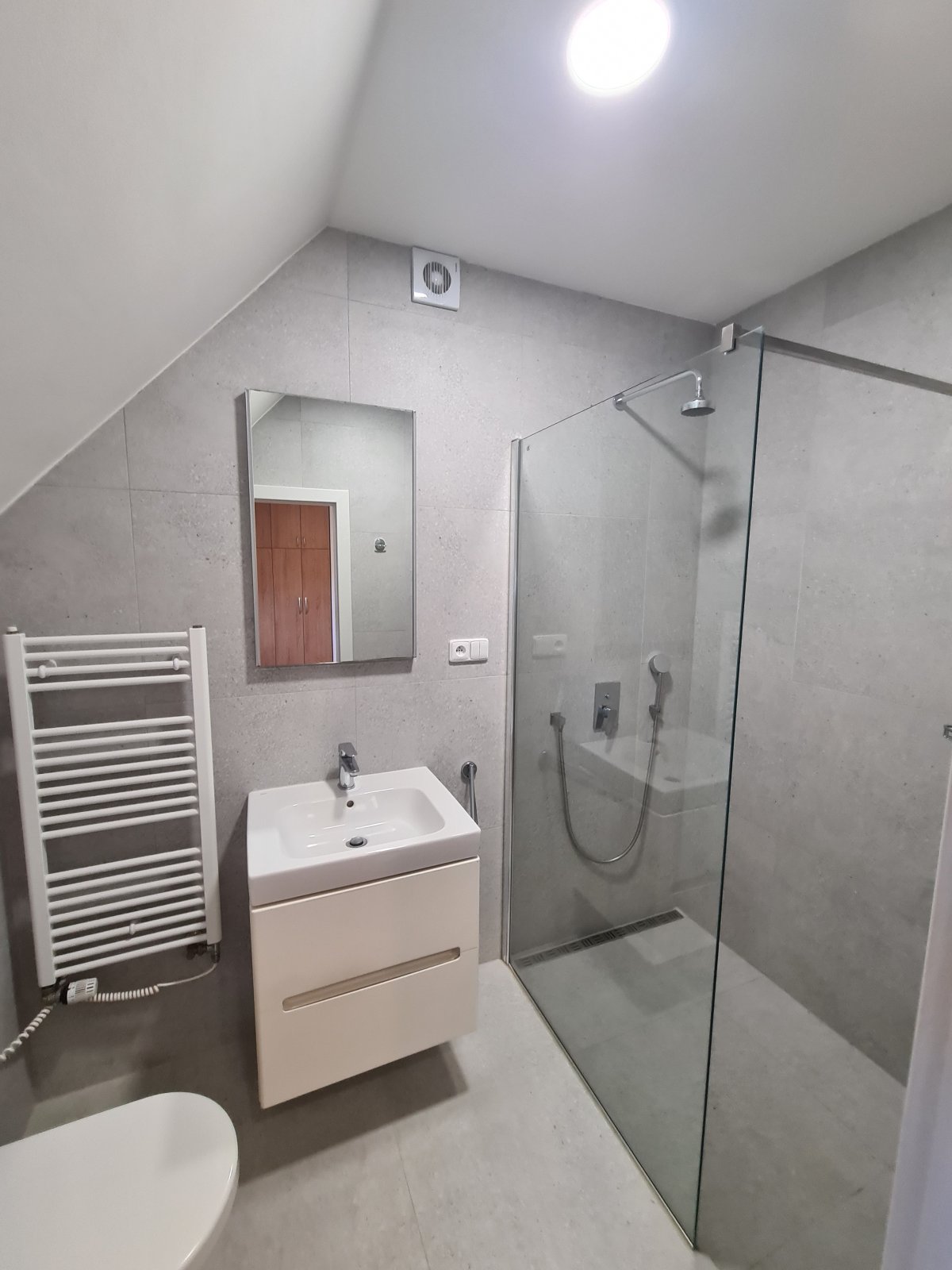 Nabízíme k pronájmu samostatně stojící rodinný dům (6+1) s udržovanou okrasnou zahradou s automatickým zavlažovacím systémem v blízkosti Průhonického parku. Nezařízený dům s obytnou plochou 350 m2 nabízí v přízemí kompletně vybavenou kuchyň (myčka nádobí, elektrický sporák se sklokeramickou deskou, odsavač par, lednice s mrazákem), jídelnu, prostorný obývací pokoj s krbem (53 m2) se vstupem na terasu s venkovním grilem, 1 ložnici, 1 koupelnu s vanou, sprchou, dvěma umyvadly, toaletou a bidetem, samostatnou toaletu a vstupní předsíň s vestavěnou skříní. V horním patře jsou 4 ložnice, samostatná šatna, vestavné skříně, 1 koupelna s vanou, sprchovým koutem a umyvadlem, 1 koupelna s umyvadlem, sprchou a toaletou. V suteréne domu je 1 místnost s možností využití jako hostovský pokoj nebo hobby místnost, samostatná prádelna, sauna s odpočívárnou a sprchovým koutem, sklad a technické zázemí. V suterénu je garážové stání pro 1 auto a vedle domu je druhá garáž. K vybavení domu patří elektrické vytápění, telefonní linka, alarm s možností napojení na policii, rozvody pro TV/SAT. Na podlahách jsou v pokojích parkety, v ostatních místnostech dlažba. Dům se nachází v příjemném a klidném prostředí v uzavřeném areálu s relaxačním centrem v centru obce, jen 100 m chůze od náměstí s mnoha restauracemi, kavárnami a obchody a vstupu do Průhonického parku. Hlavní výhodou této lokality je snadná dostupnost do centra města a pohodlné bydlení. V blízkosti je nájezd na dálnici D1 směr Praha/Brno, dobrá dostupnost autem nebo autobusem do mezinárodních škol. Průhonice patří k velmi oblíbeným a vyhledávaným lokalitám, vhodným zejména pro rodiny s dětmi.