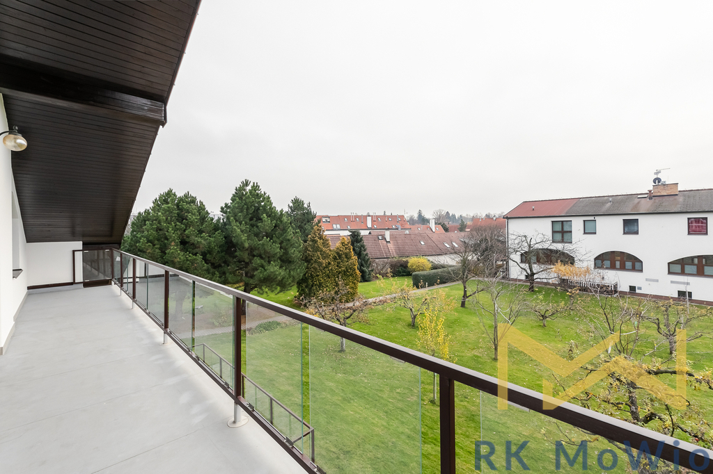 Samostatný rodinný dům (350 m2) na pronájem nacházející se v Průhonicích v blízkosti Prahy 4. Přízemí domu nabízí vstupní chodbu, kuchyň, jídelní prostor, obývací pokoj s krbem, vstup na terasu a zahradu, předsíň a samostatnou toaletu. První patro domu zahrnuje 4 ložnice, jednu šatnu a jednu koupelnu. V suterénu domu se nachází místnost s možností využití pro hobby, koupelna se saunou, dvě technické místnosti a dvou garáž. Vybavení domu: alarm s možností napojení na policii, základní osvětlení, podlahy jsou v pokojích parketové, zahrada s automatickým zavlažovacím systémem, centrální elektrické topení.