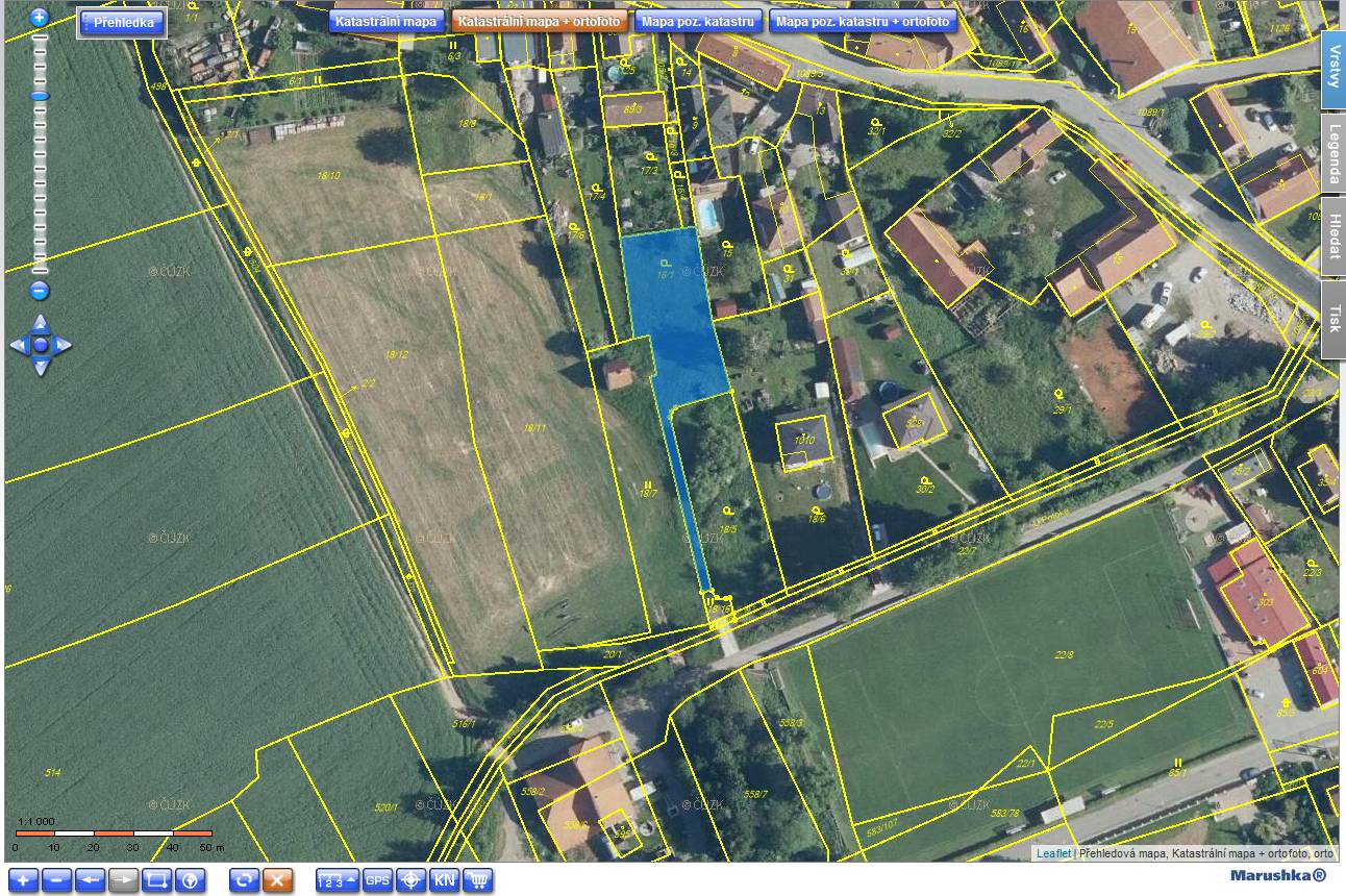 Dle územního plánu je možné ihned zastavět až 30 % pozemku, což znamená cca 300 m². Maximální výška domu: 8 m