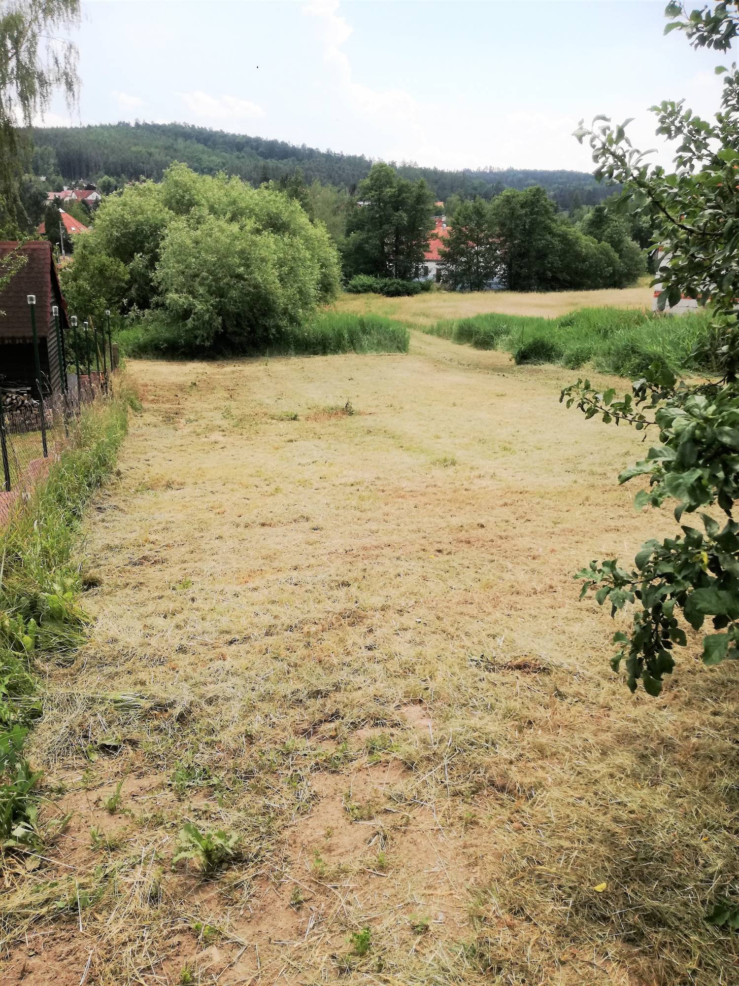 Samotný pozemek je situován na okraji obce, v ulici U Potoka, z jedné strany v návaznosti na stávající zástavbu, z druhé strany na velikou louku, tedy v naprostém klidu s tím, že k tomuto pozemku byl zbudován vlastní přístup po mostku přes romantický Záhořanský potok. Pozemek je v mírném, jižně orientovaném svážku, kam celý den svítí slunce.