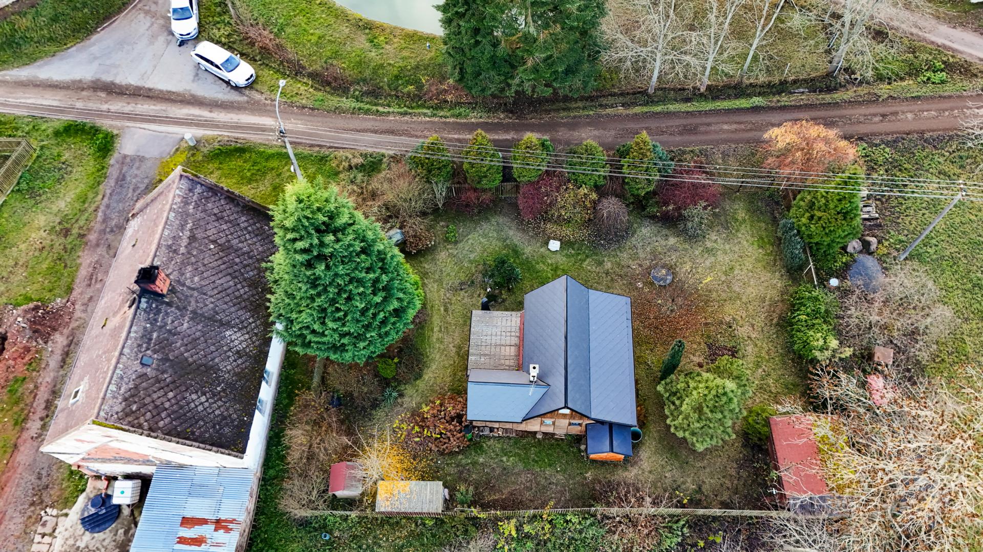 Příjezd je po obecní zpevněné komunikaci, parkování je možné na pozemku za bránou nebo na cestě před chatou.