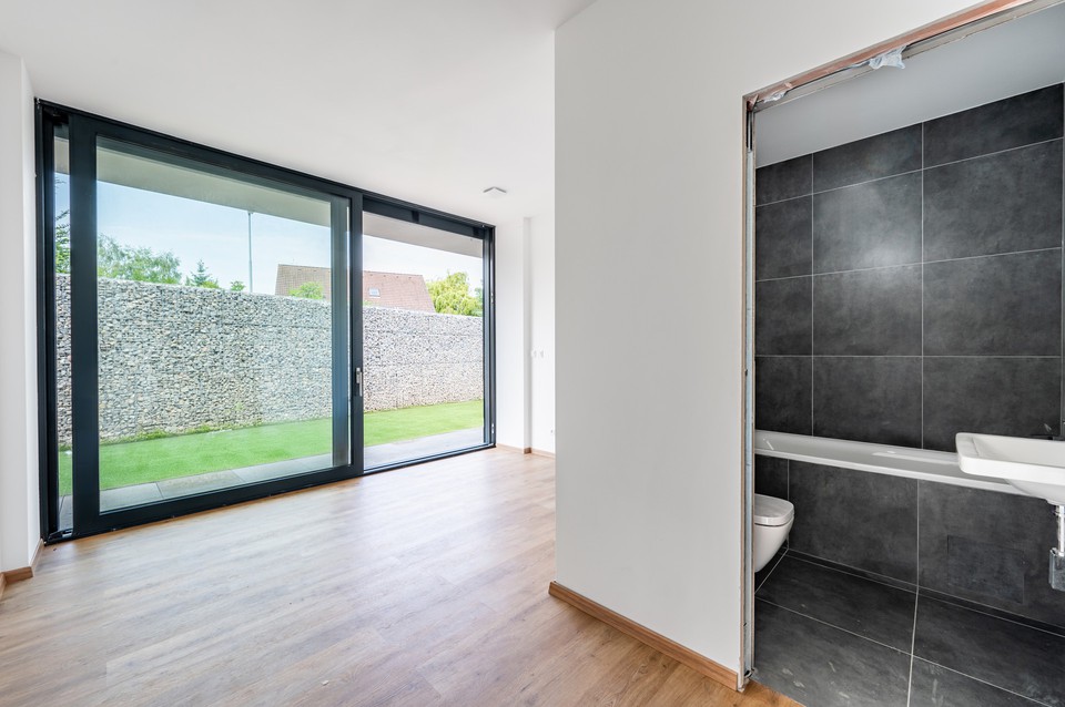 Jednopodlažní praktické uspořádání zahrnuje otevřený koncept (50m2) obývacího pokoje s přípravou na kuchyň, jídelním prostorem a s přímým vstupem na zahradní terasu a následně do zahrady, dále hlavní ložnici se šatnou a en-suite koupelnou, další 2 ložnice s vlastními koupelnami, samostatnou toaletou pro hosty zvlášť, pracovnu, technickou místnost, vstupní hala - předsíň.