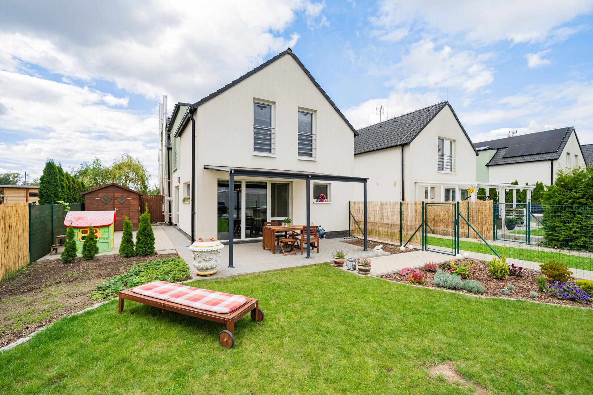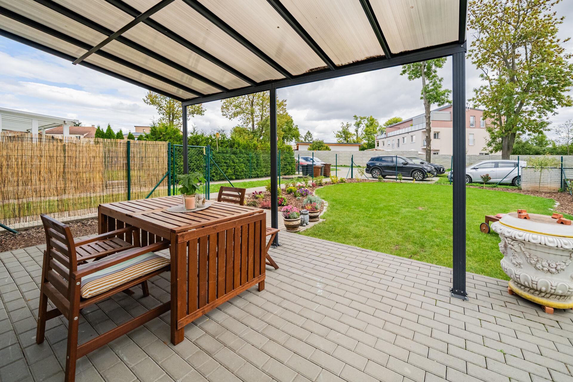 Pokud hledáte pohodlné bydlení pro Vaši rodinu se zahrádkou a zároveň v blízkosti Prahy, máme pro Vás skvělou nabídku na koupi řadového domku. Jedná se v podstatě o mezonetový byt 3kk, 86 m2, se zastřešenou terasou, zahradním domkem, parkováním a pečlivě udržovanou zahradou o rozloze 228 m2.