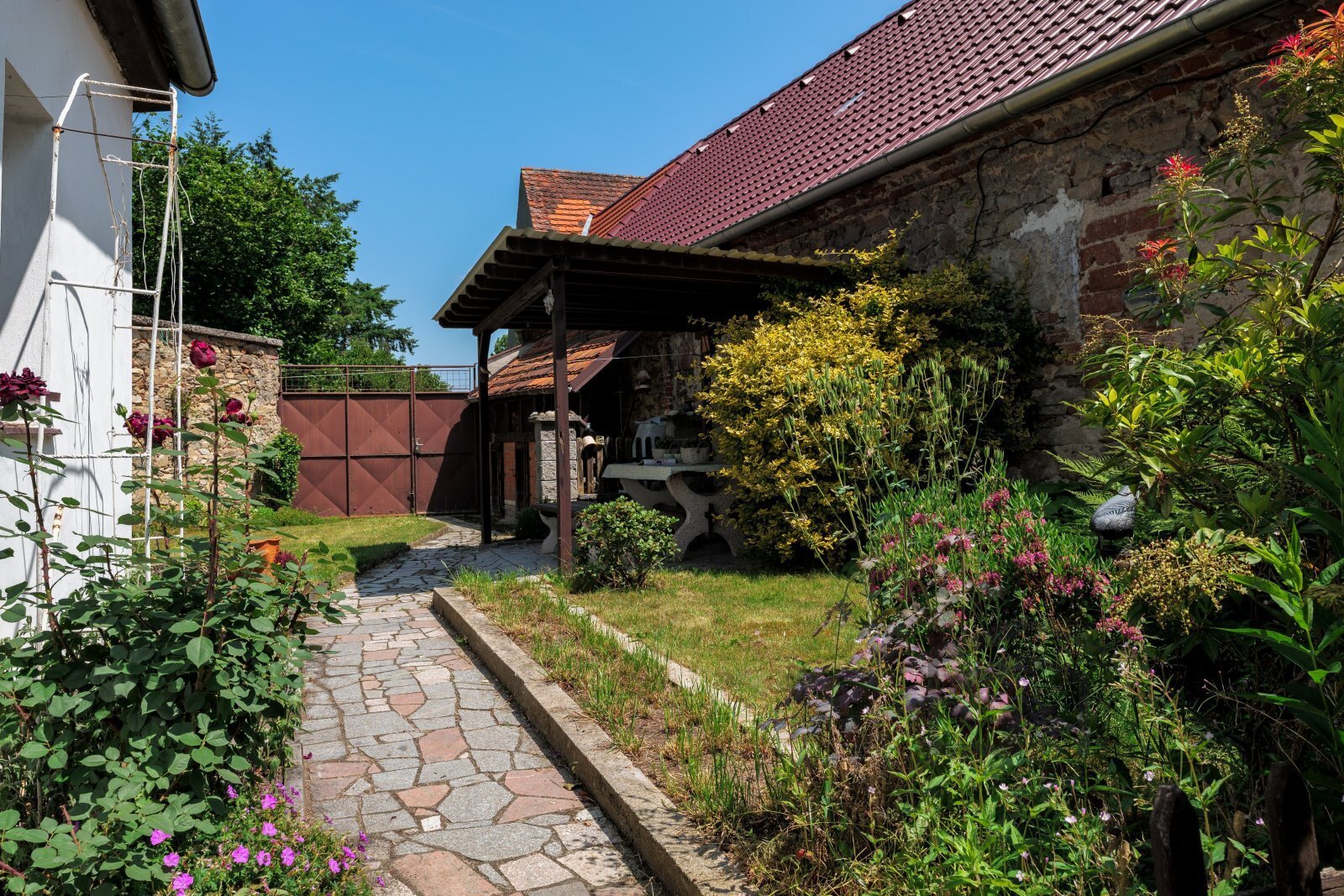 Celý pozemek o rozloze 390 metrů nabízí dva pohodlné příjezdy. Zahrada je převážně okrasná s množstvím růží a květin. K dispozici je prostorná garáž a příjemná pergola, ideální pro posezení za každého počasí. Nechybí ani dostatek úložných prostor, které jsou doslova všude, např. na kola. Dům je taktéž částečně podsklepený.