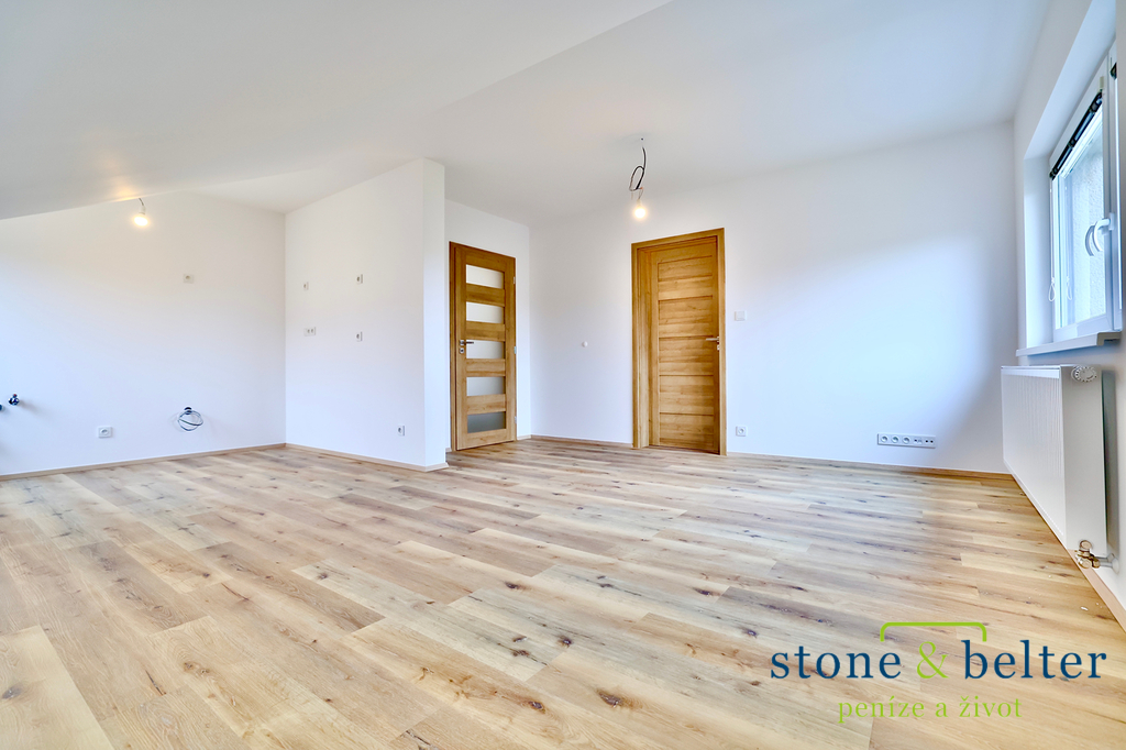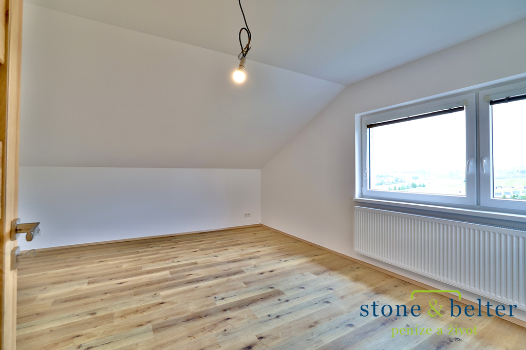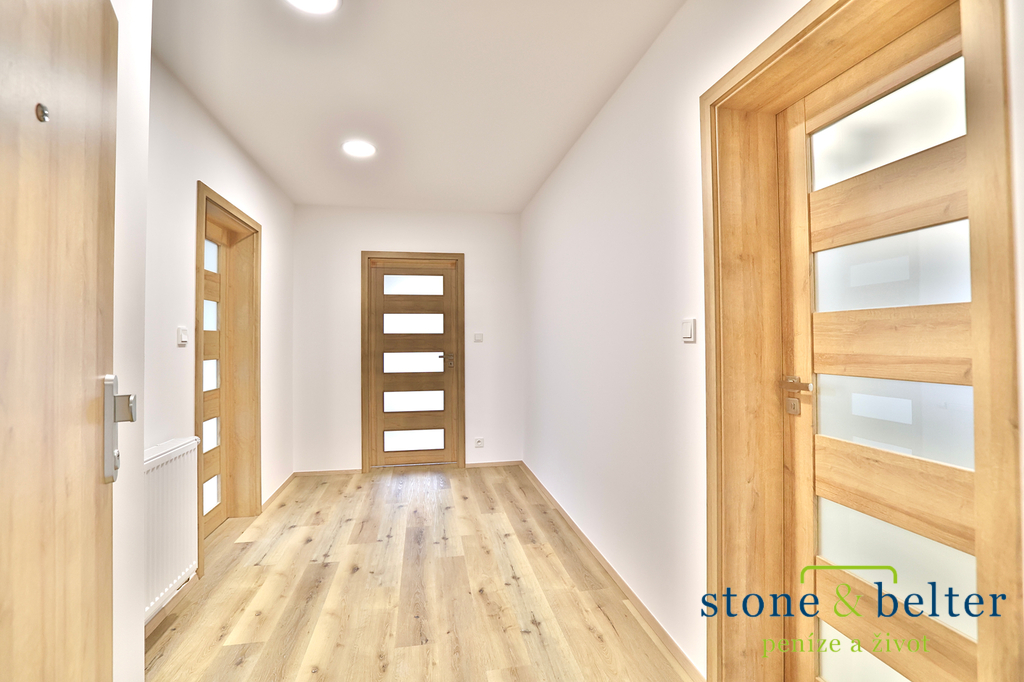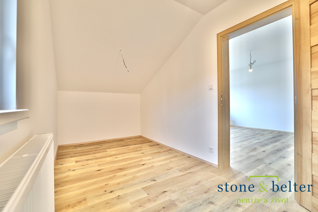 Podkrovní jednotka 4+kk prošla nově rekonstrukcí – byla zateplena střecha, vybudovány nové příčky, rozvody elektřiny a vody, sádrokartonové podhledy i nové podlahy a koupelna s toaletou. V bytě jsou okna s dvojitými skly vybavená vnitřními žaluziemi. Vytápění bytu a ohřev vody zajištěno elektrokotlem. V mezipatře je zasazena terasa.