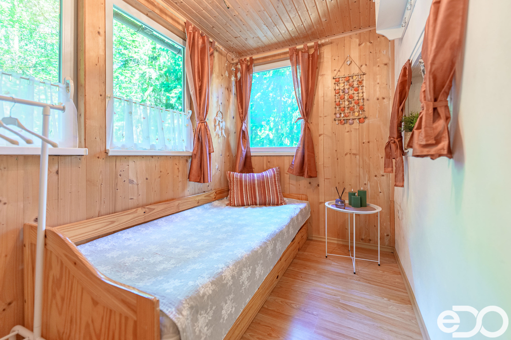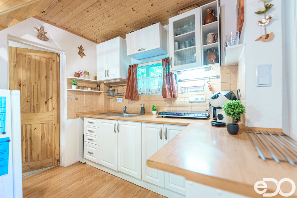 Chata je v dobrém stavu, s koupelnou po rekonstrukci, obývací částí s krbovými kamny a dvěma ložnicemi, které poskytují ubytování pro až 6 osob. Venkovní pergola s posezením a ohništěm dotváří příjemné zázemí pro odpočinek.
