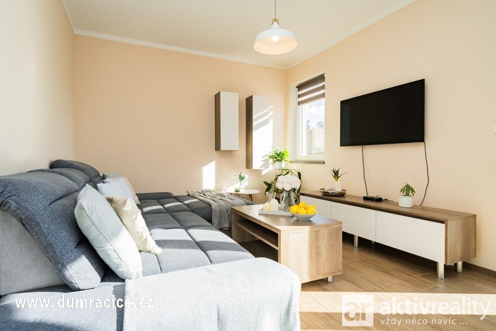 Račice: bungalov 4+kk (2020) + objekt cca 50 m², FVE 7,5 kWp + baterie 10,5 kW, pozemek 999 m²