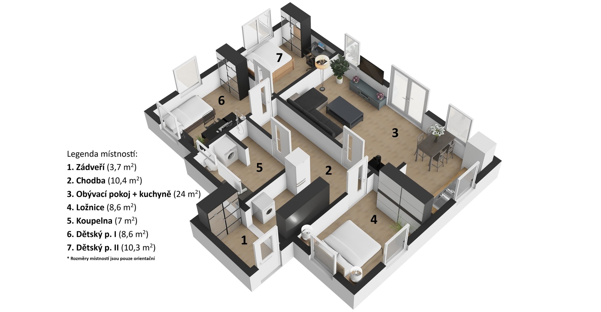 - 3 samostatné pokoje