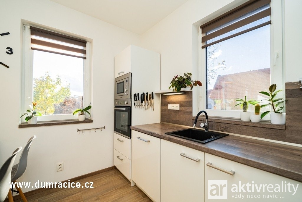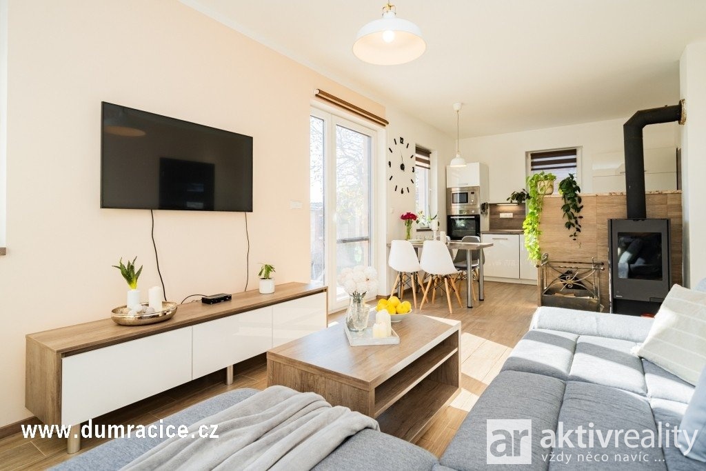 Hledáte moderní nízkonákladové bydlení a k tomu „druhý prostor“ navíc? Nabízíme zděný bungalov 4+kk (2020) na pozemku 999 m² v obci Račice u Štětí. Součástí prodeje je také samostatný zateplený mobilheim cca 50 m² – ideální pro hosty, pracovnu, zázemí pro rodinu nebo případně pronájem.