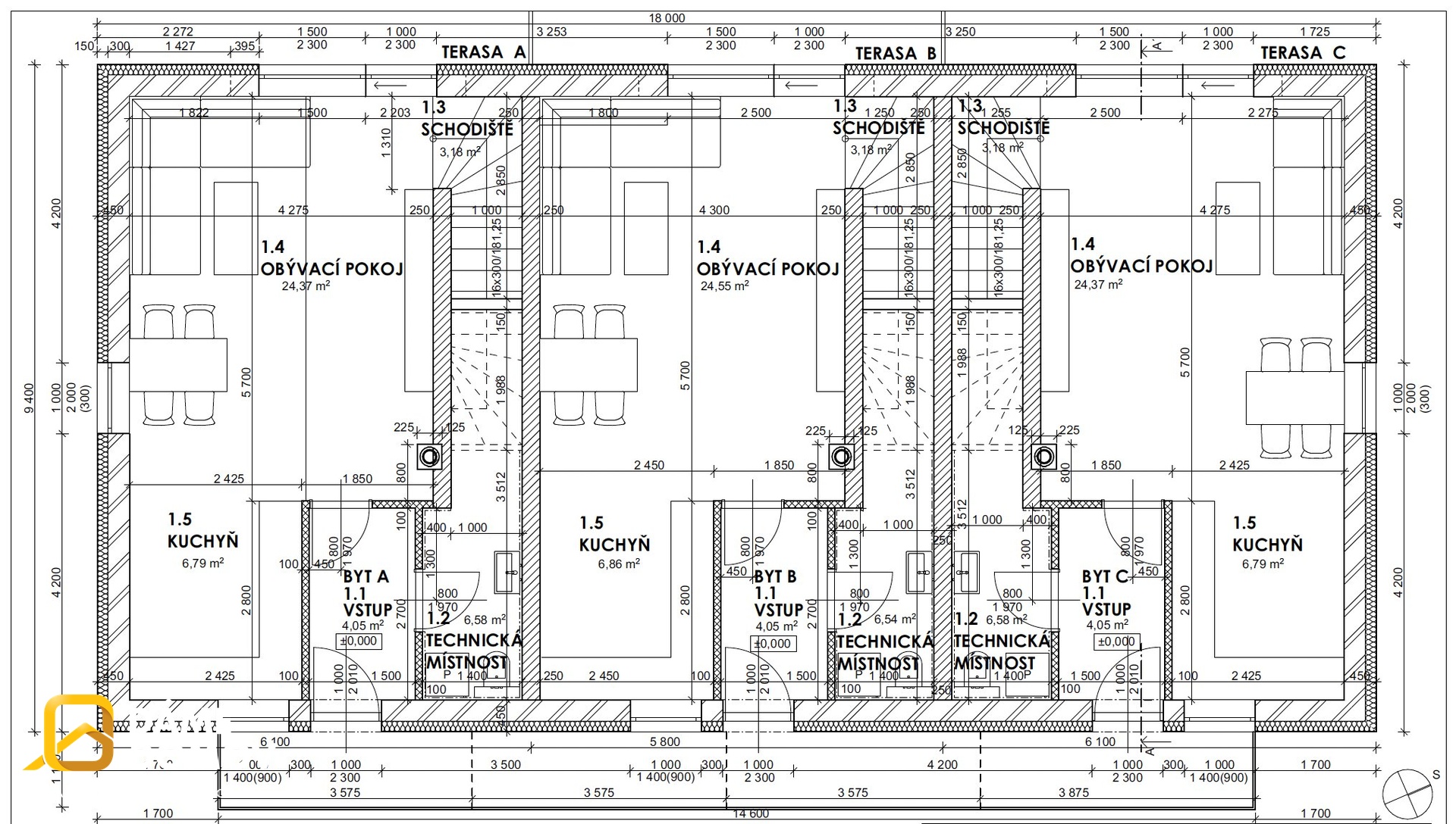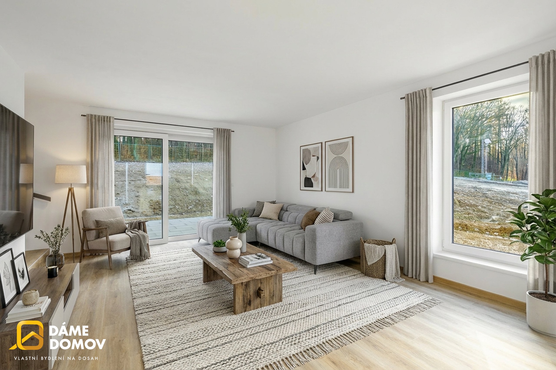 Dominantou domu je prostorný obývací pokoj s kuchyňským koutem, který nabízí ideální zázemí pro rodinný život i setkávání s přáteli. Ložnice a dětské pokoje poskytují dostatek soukromí a klidu. Velkým benefitem je také praktická technická místnost, vhodná jako prádelna i úložný prostor pro sezónní věci.