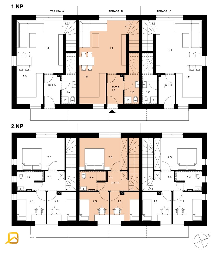 K domu náleží také 2 parkovací místa přímo před domem. Projekt navíc zahrnuje výstavbu dalších domů, díky čemuž je možné u vybraných prvků volit dekory v rámci standardu a přizpůsobit si bydlení vlastnímu vkusu.