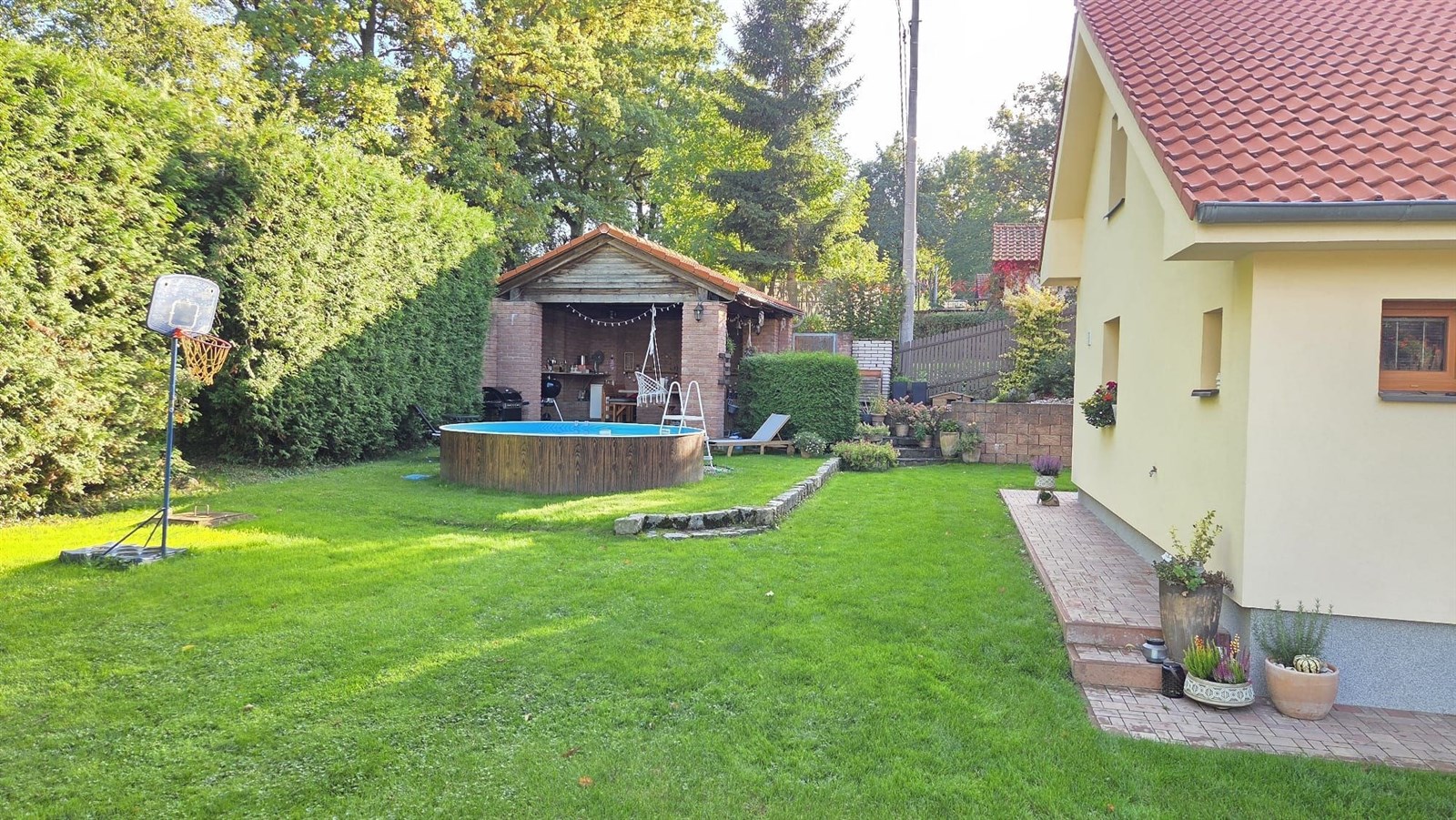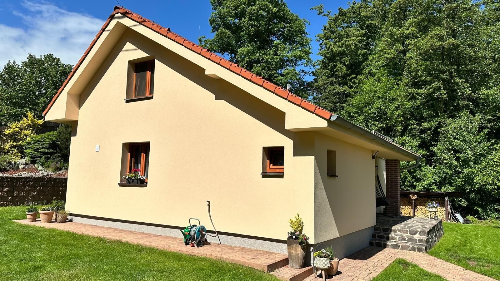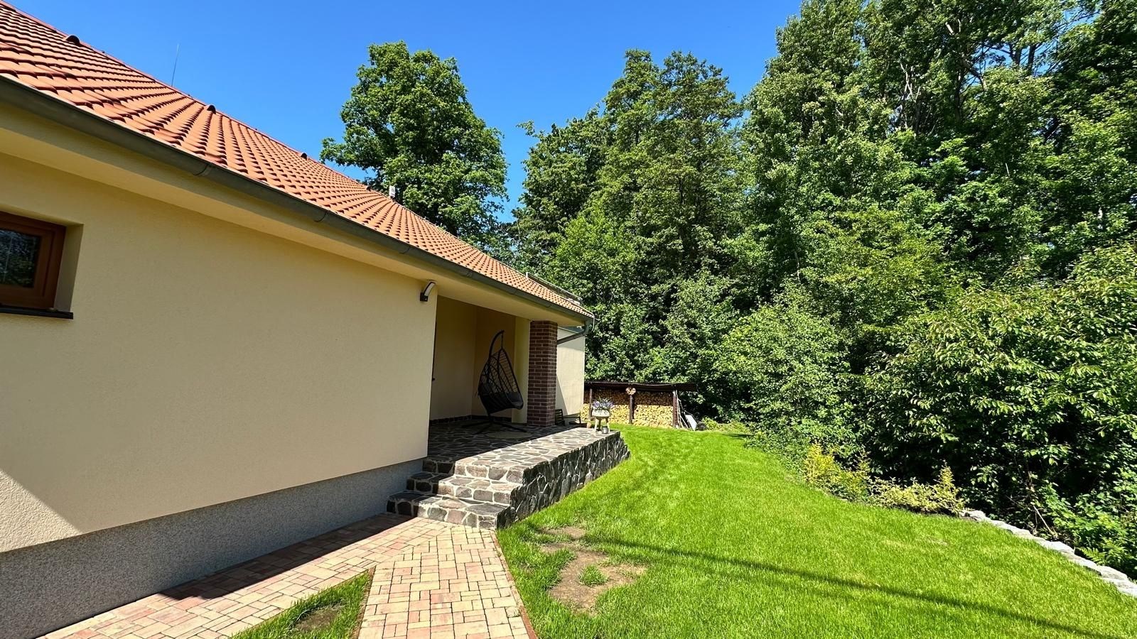 A to není vše – na zahradě se nachází velkorysé zastřešené venkovní posezení s grilem, které přímo vybízí k letnímu stolování, večerním setkáním s přáteli nebo rodinným oslavám pod širým nebem. Díky zastřešení si své chvíle pohody můžete užívat i při lehkém dešti, zatímco vůně grilovaných dobrot se mísí s vůní lesa a rozkvetlé zahrady. K dispozici je i zahradní domek na nářadí a přístřešek na dřevo.