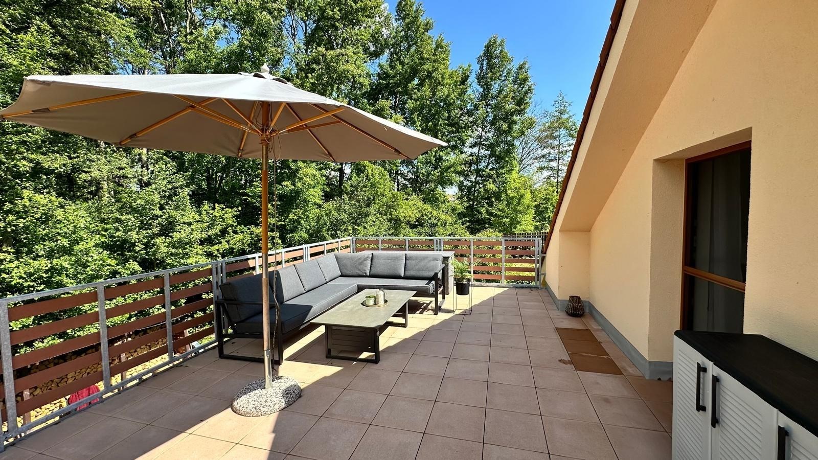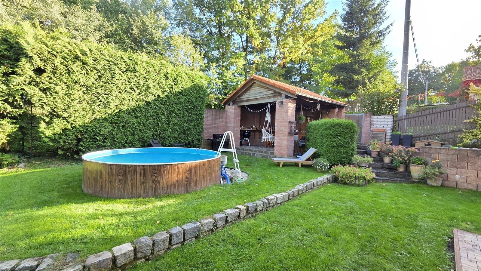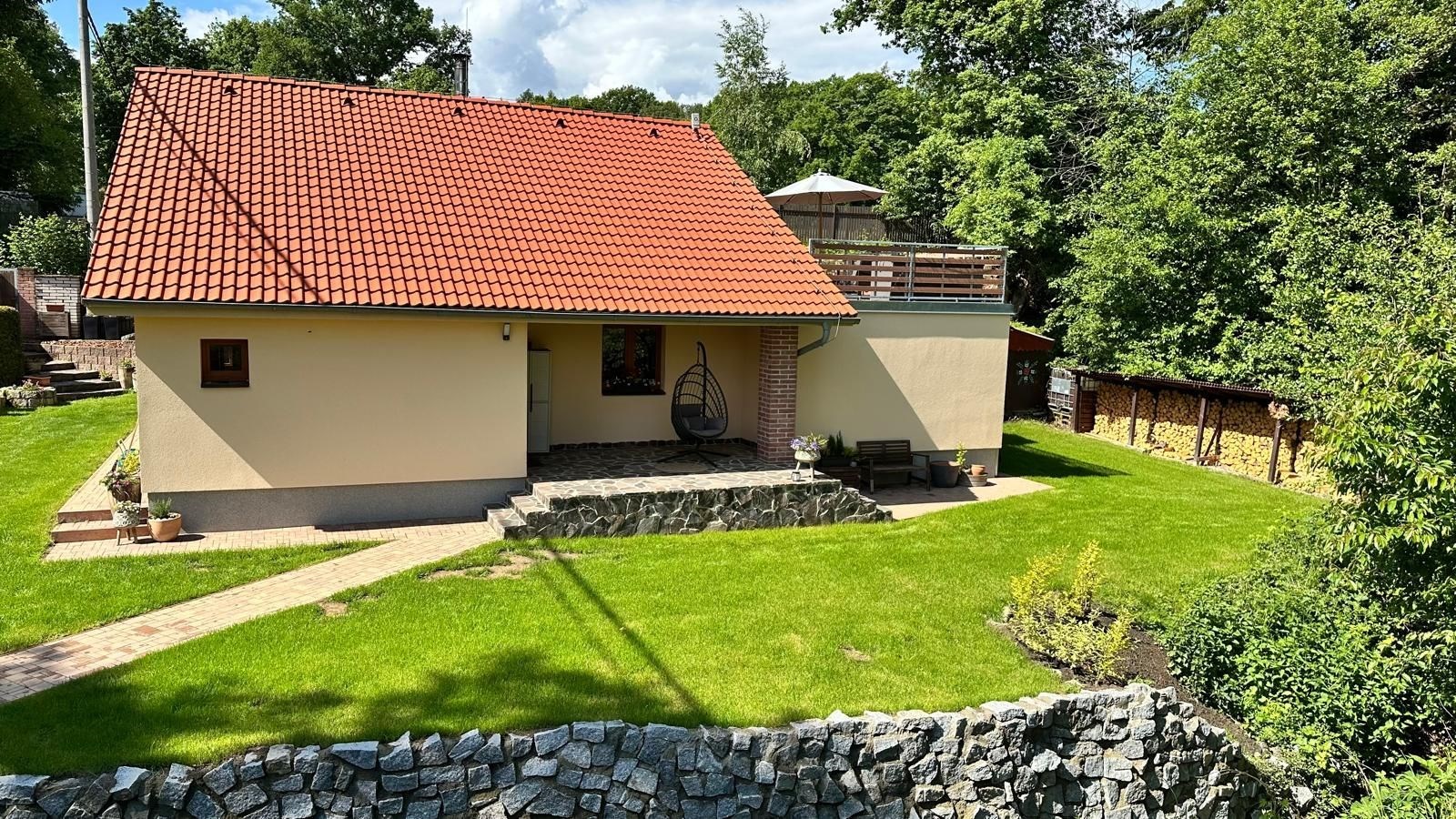 A to není vše – na zahradě se nachází velkorysé zastřešené venkovní posezení s grilem, které přímo vybízí k letnímu stolování, večerním setkáním s přáteli nebo rodinným oslavám pod širým nebem. Díky zastřešení si své chvíle pohody můžete užívat i při lehkém dešti, zatímco vůně grilovaných dobrot se mísí s vůní lesa a rozkvetlé zahrady. K dispozici je i zahradní domek na nářadí a přístřešek na dřevo.