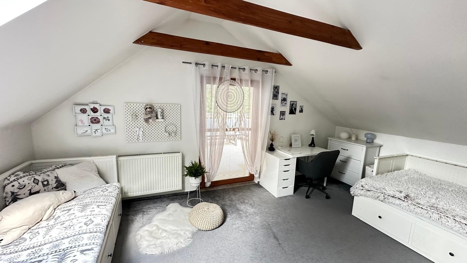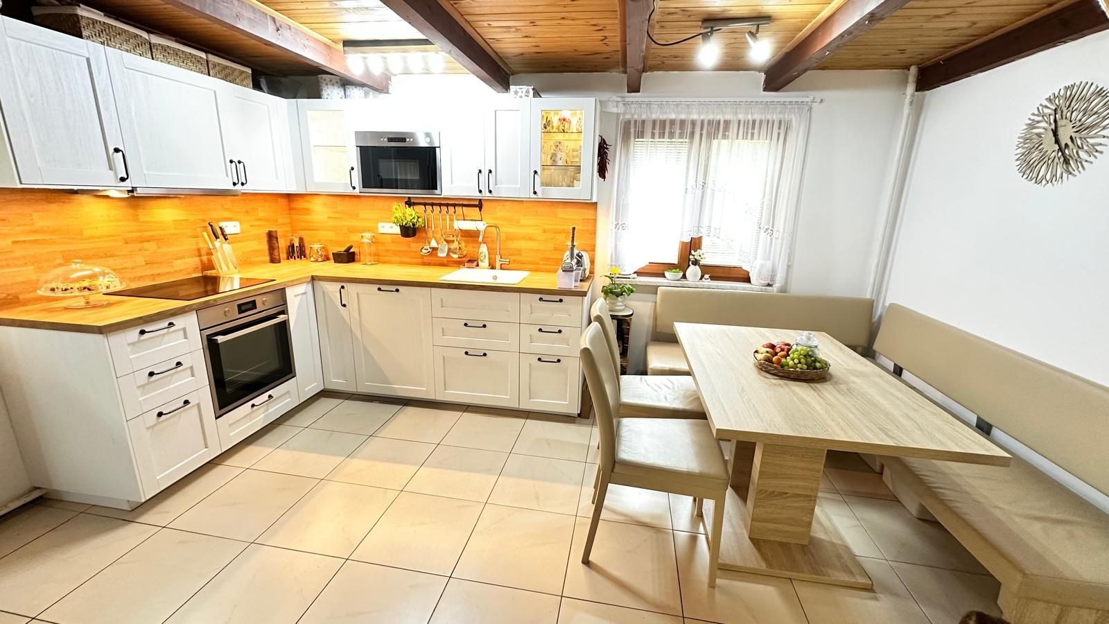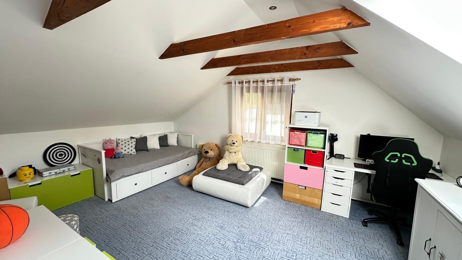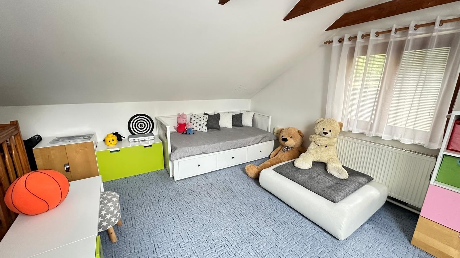 Dům má dispozici 4+1 a poskytuje dostatek místa i pro větší rodinu. V přízemí se nachází obývací pokoj s krbovými kamny s výměníkem, které spolu s elektrokotlem zajišťují ústřední vytápění celého domu, samostatná prostorná kuchyně, koupelna, toaleta a velký pokoj. V patře jsou dva pokoje a nadchne Vás prostorná terasa s dechberoucím výhledem do okolního lesa – ideální místo pro ranní kávu, večerní víno nebo relaxaci u knihy.