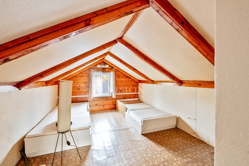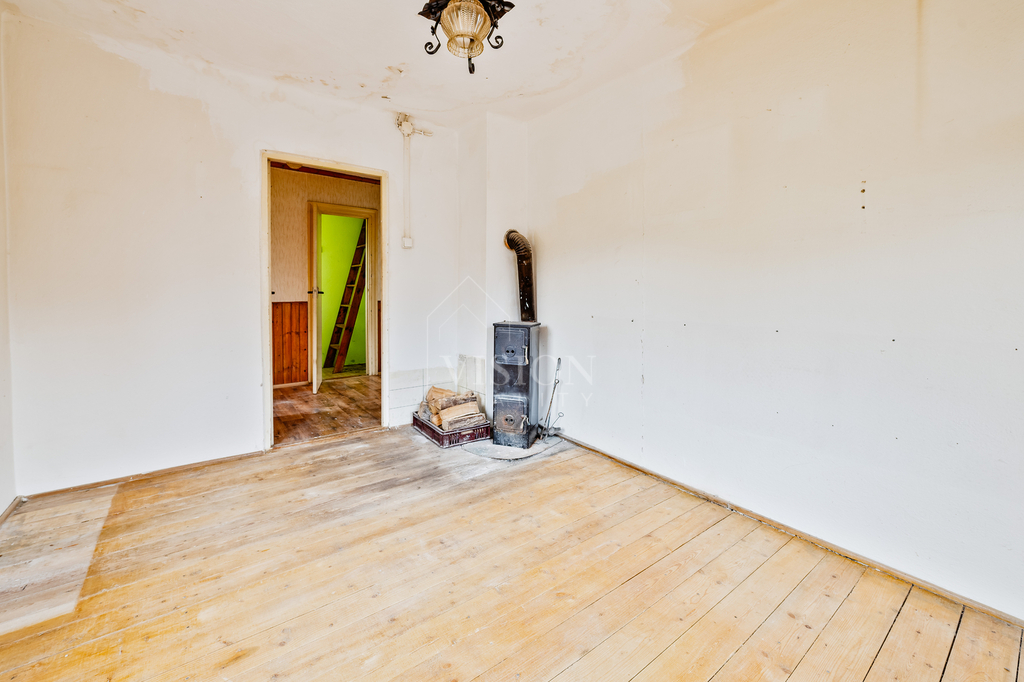 Vstup do chaty je přes prosklenou verandu, ve které lze udělat příjemné posezení s výhledem do přírody, které jistě oceníte v chladnějších večerech nebo zimě. V dolním patře naleznete obývák s kamny, další pokoj a samostatnou kuchyň. Dále je zde toaleta a schody, kterými se dostanete do horního patra, kde je příjemný otevřený prostor ideální jako ložnice nebo pokojíček pro děti.