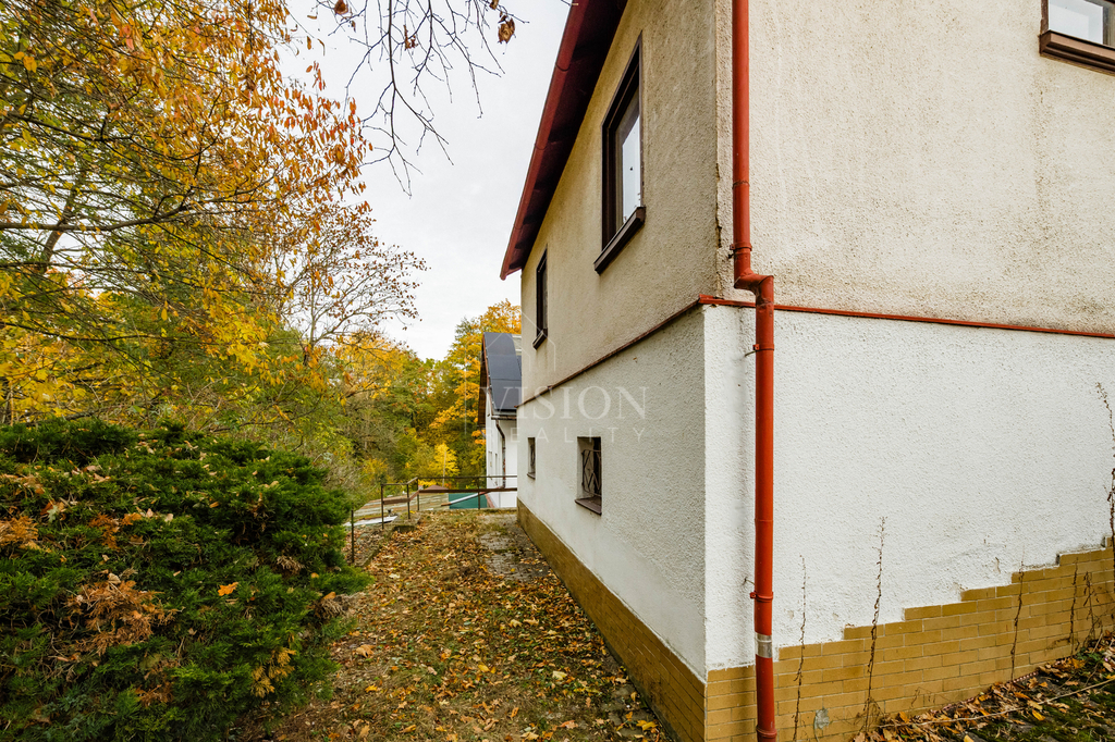 V suterénu objektu se nachází garáž a prostorný sklep, což rozšiřuje praktické využití celé nemovitosti, například na další obytnou část.