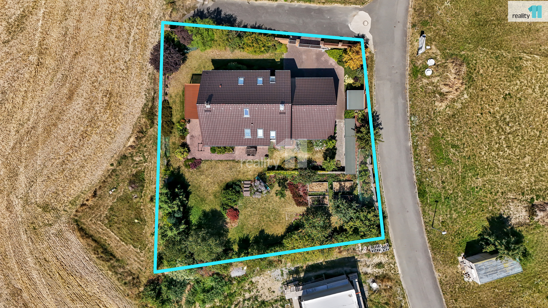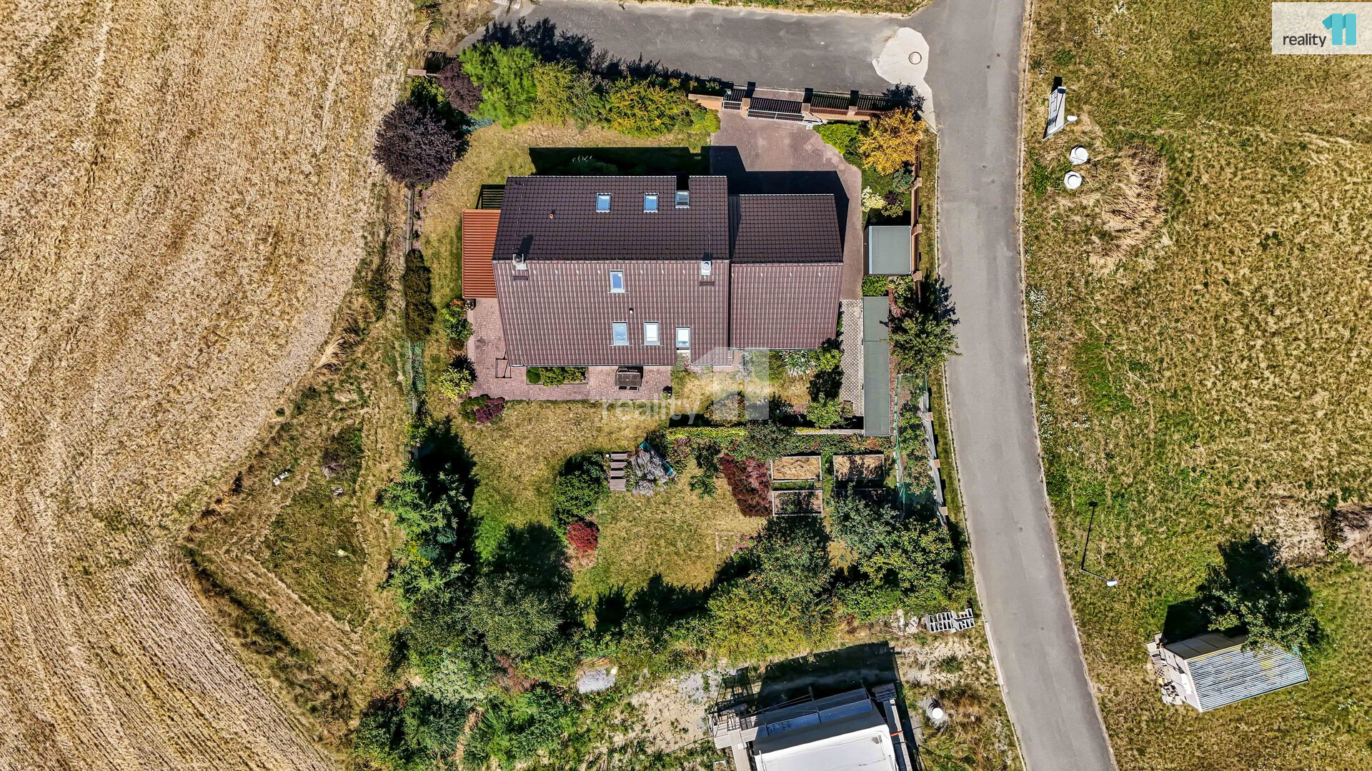 Zejména děti ocení velký prostor pro hraní a zabudovanou klouzačku. Součástí pozemku je i zahradní domek nabízející další úložný prostor pro zahradní náčiní.