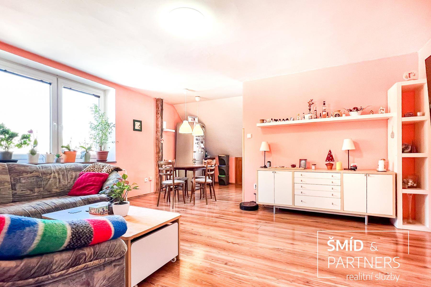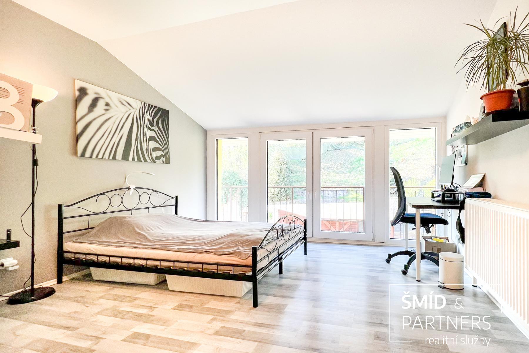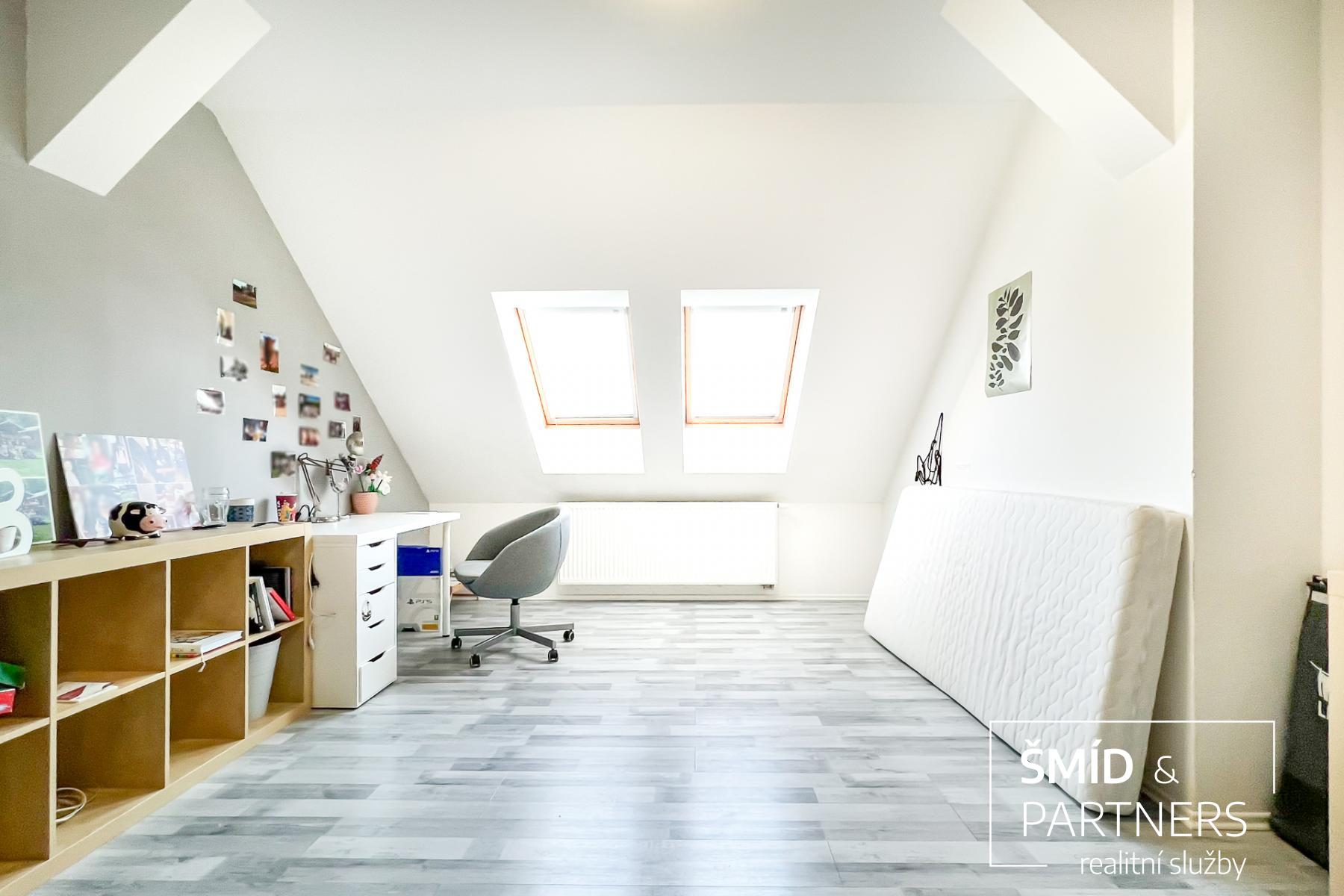 Poslední ze současných jednotek se rozprostírá na celé ploše podkroví domu.