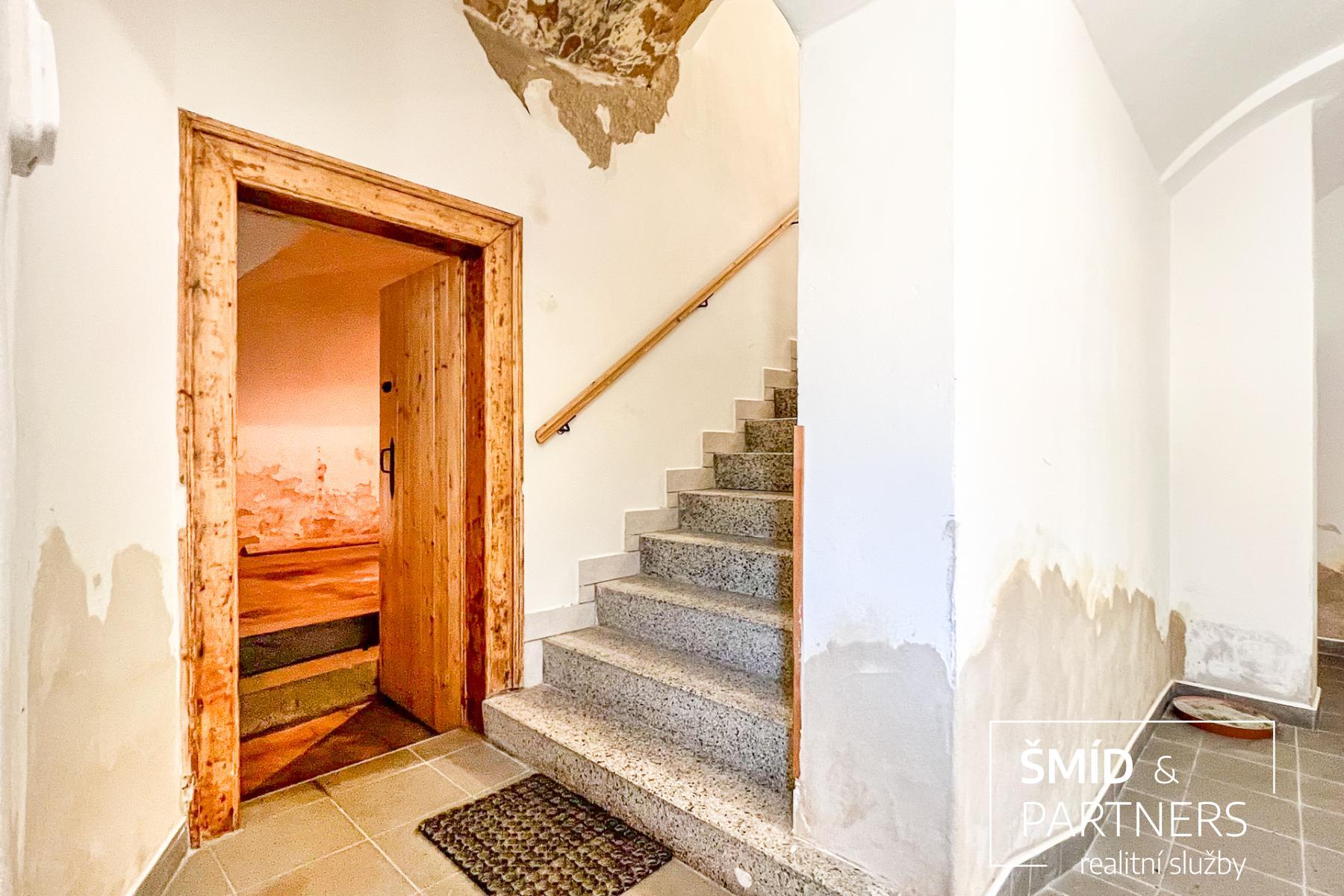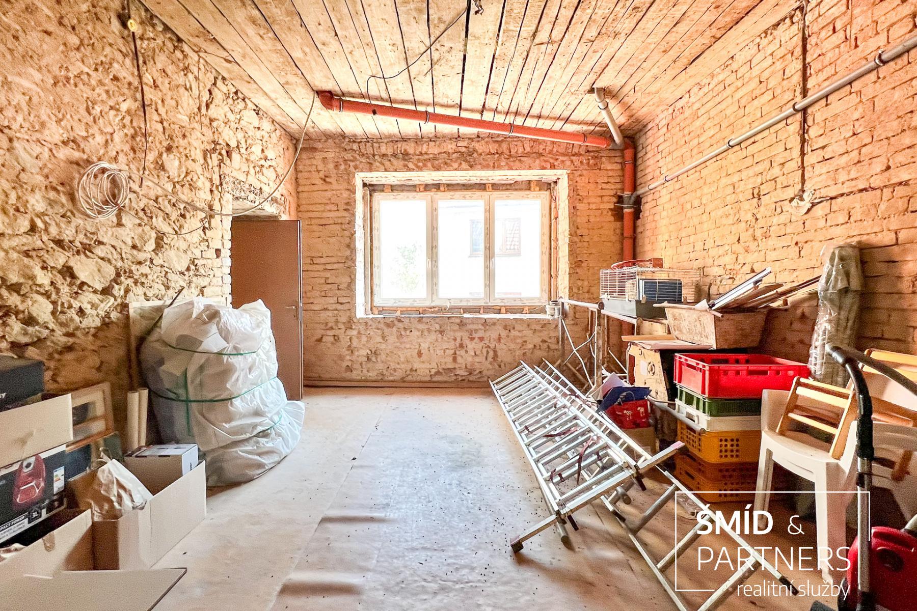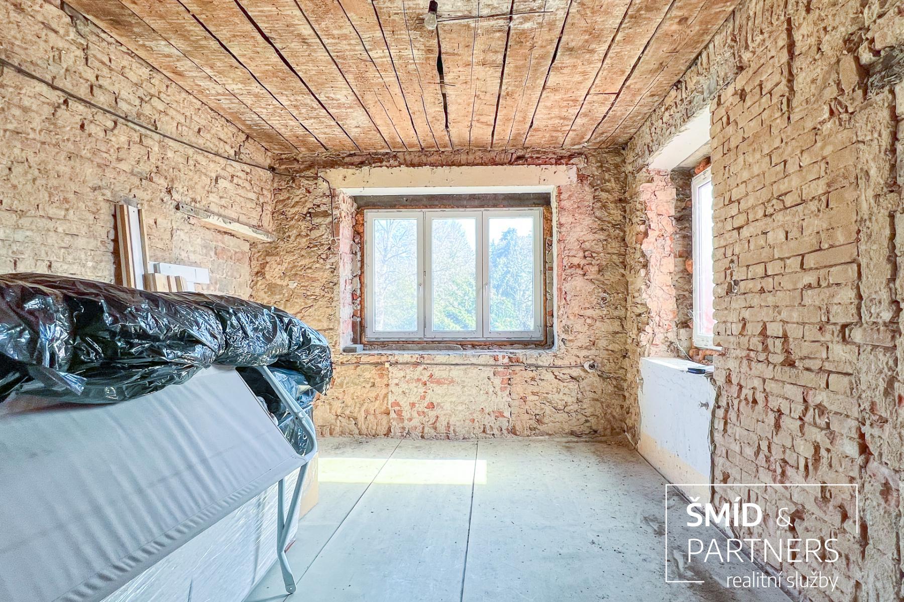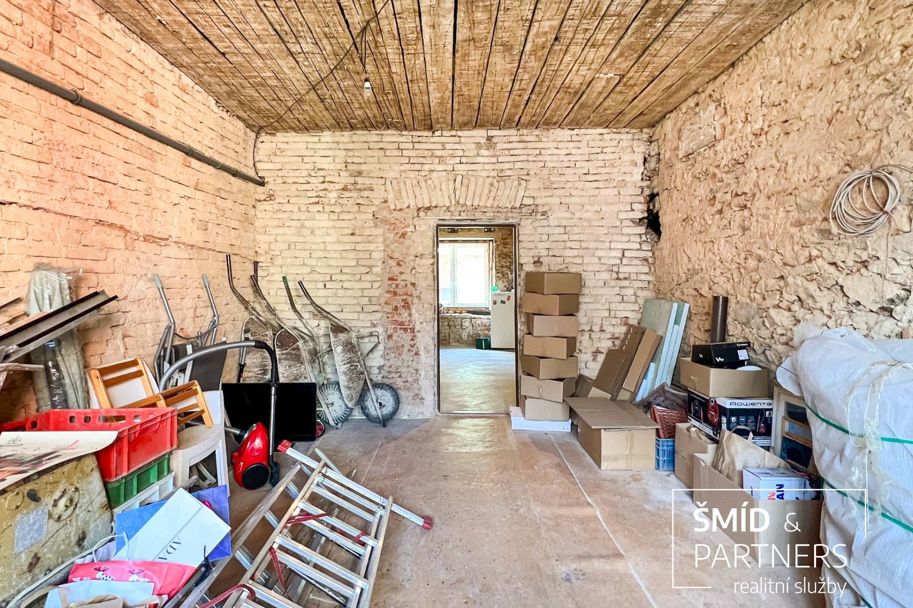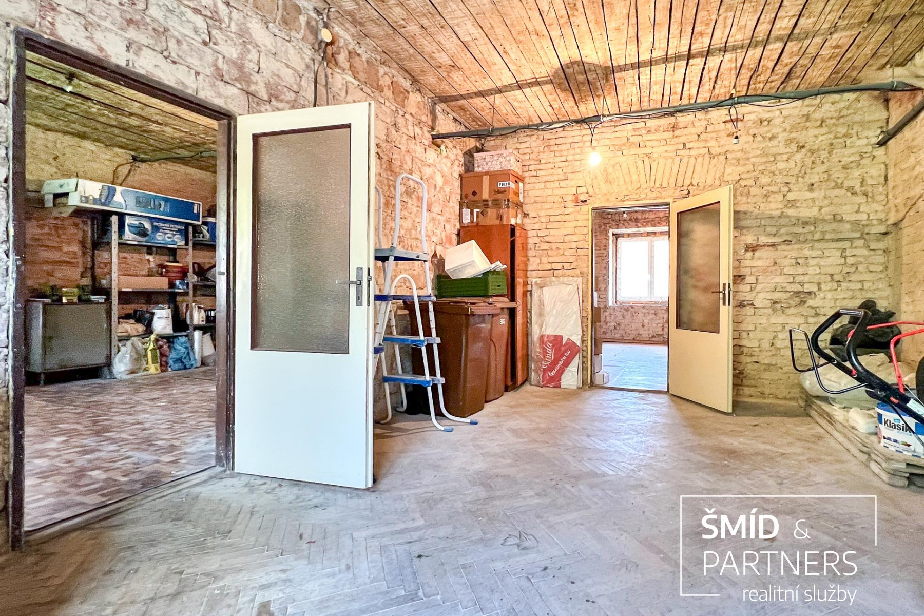 Naše kancelář nabízí k prodeji mimořádně velký venkovský rodinný dům se třemi bytovými jednotkami, zahradou, garáží a rozsáhlými sklepními prostory. Dům pochází nejspíše z první poloviny 19. století a nachází se v těsném sousedství Radimského zámku a jeho rozlehlého parku. Dům je zapuštěn do svahu, a tak je z jeho 1 NP krásný přístup přímo do zahrady, která se celou svou plochou nachází za domem. Za jedním ze vstupů do domu z klidné ulice se v jeho přízemí nachází rozsáhlé technické prostory s dílnou, garáž a masivní sklepní prostory s klenutými stropy. V této části by bylo možné v případě potřeby vybudovat další bytovou jednotku. Ta by tak disponovala i samostatným bočním vstupem a její dominantou by byly nádherné valené a křížové klenby. Z přízemí vede centrální schodiště do 1NP, kde se nacházejí dva samostatné byty. Jeden, menší, o ploše 67 m2 je v původním stavu zhruba ze 70./80. let 20. stol. a dispozičně je řešen jako 2+kk. Druhý z bytů na tomto podlaží je momentálně připraven na kompletní rekonstrukci, takzvaně na cihlu, a tedy s možností dispozičních změn. Jeho plocha činí 115 m2 a výška podlah je ve stejné úrovni jako zahrada. Úplně se zde nabízí při rekonstrukci použít francouzská okna a dodat tak tomuto bytu benefit přímého vstupu na zahradu.