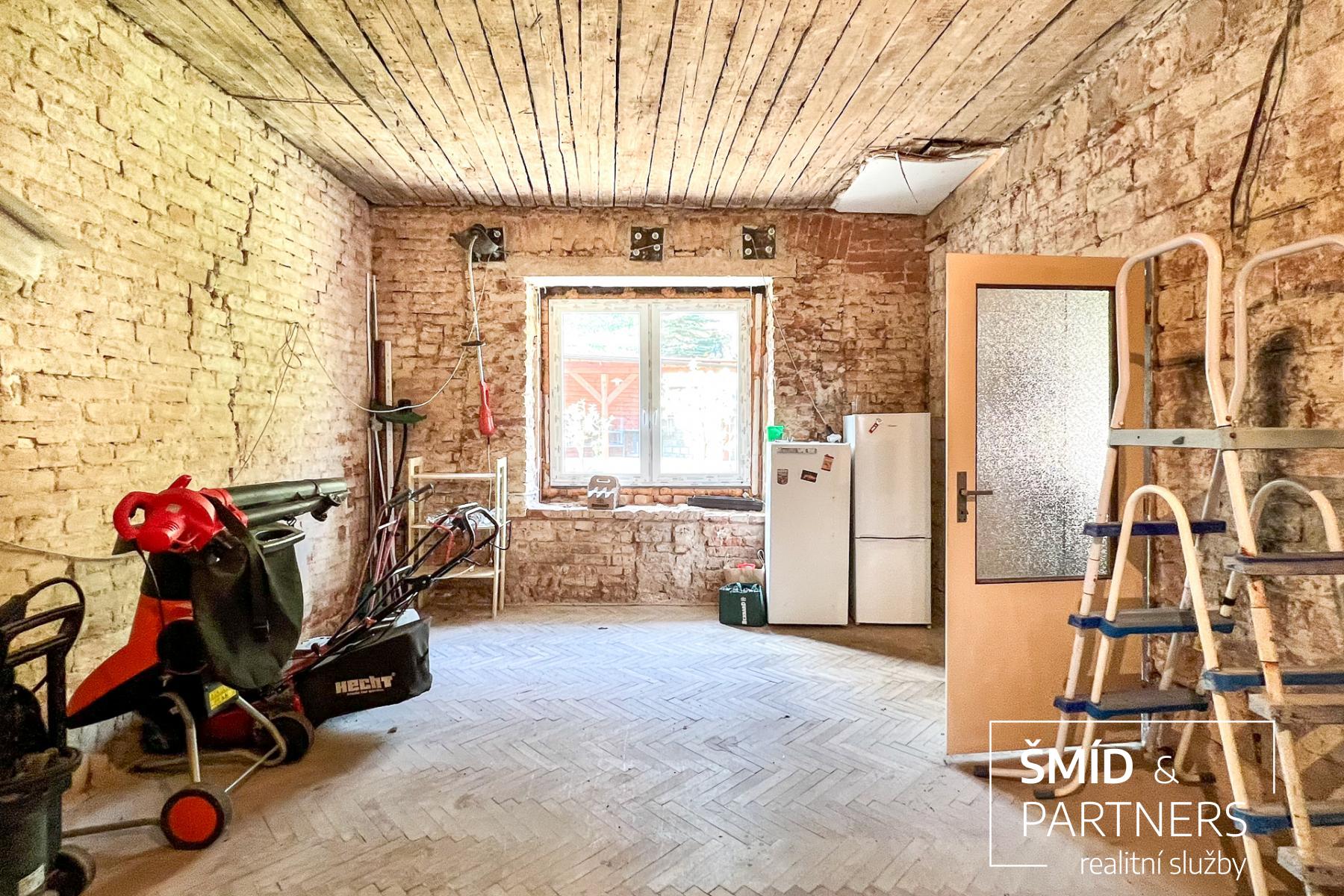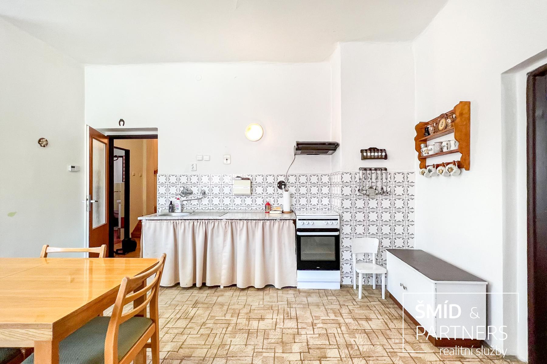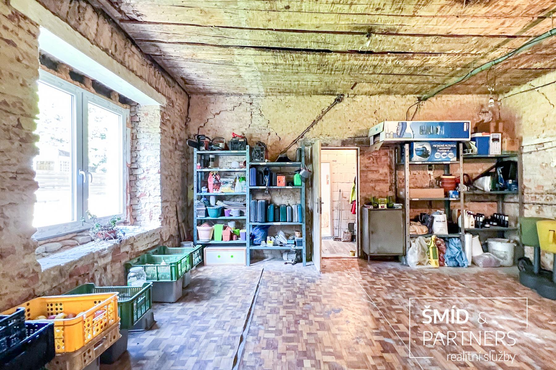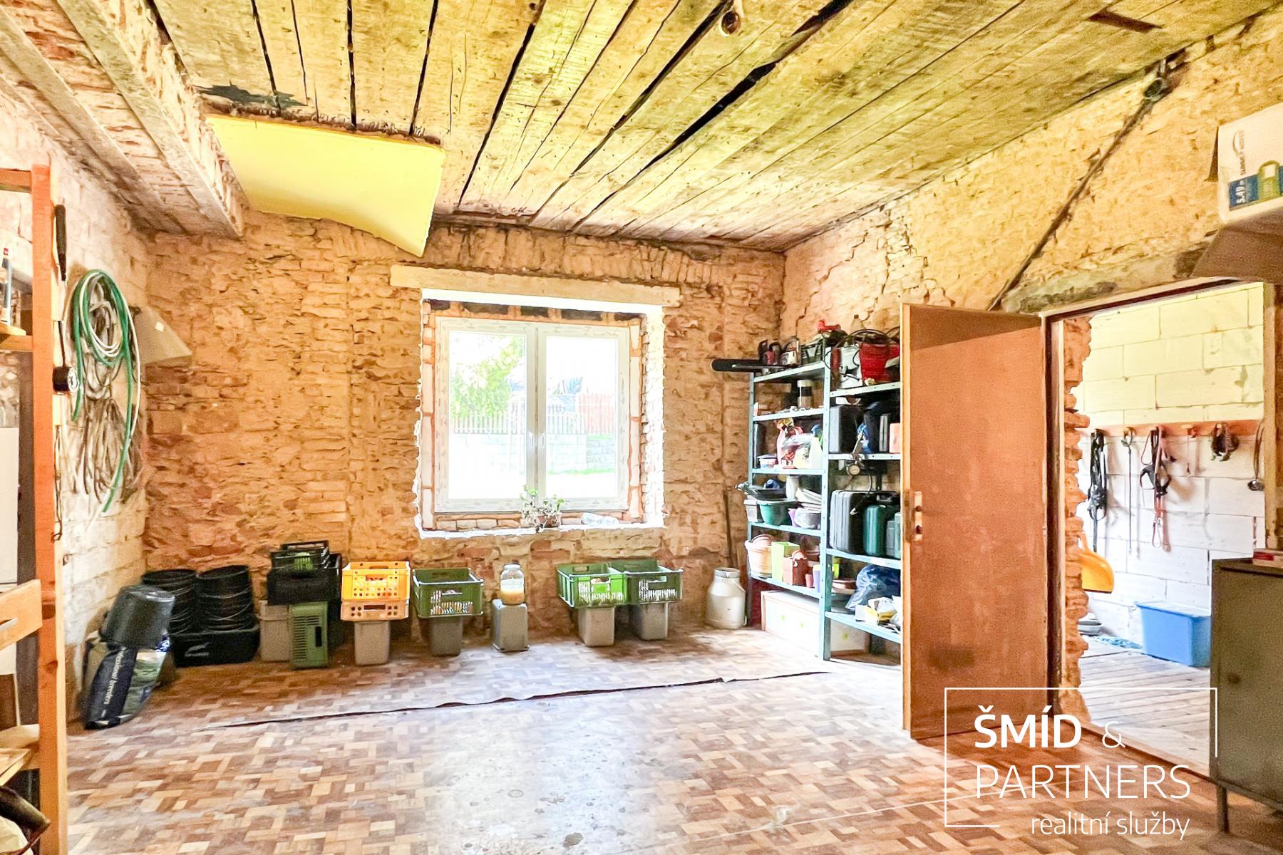 Naše kancelář nabízí k prodeji mimořádně velký venkovský rodinný dům se třemi bytovými jednotkami, zahradou, garáží a rozsáhlými sklepními prostory. Dům pochází nejspíše z první poloviny 19. století a nachází se v těsném sousedství Radimského zámku a jeho rozlehlého parku. Dům je zapuštěn do svahu, a tak je z jeho 1 NP krásný přístup přímo do zahrady, která se celou svou plochou nachází za domem. Za jedním ze vstupů do domu z klidné ulice se v jeho přízemí nachází rozsáhlé technické prostory s dílnou, garáž a masivní sklepní prostory s klenutými stropy. V této části by bylo možné v případě potřeby vybudovat další bytovou jednotku. Ta by tak disponovala i samostatným bočním vstupem a její dominantou by byly nádherné valené a křížové klenby. Z přízemí vede centrální schodiště do 1NP, kde se nacházejí dva samostatné byty. Jeden, menší, o ploše 67 m2 je v původním stavu zhruba ze 70./80. let 20. stol. a dispozičně je řešen jako 2+kk. Druhý z bytů na tomto podlaží je momentálně připraven na kompletní rekonstrukci, takzvaně na cihlu, a tedy s možností dispozičních změn. Jeho plocha činí 115 m2 a výška podlah je ve stejné úrovni jako zahrada. Úplně se zde nabízí při rekonstrukci použít francouzská okna a dodat tak tomuto bytu benefit přímého vstupu na zahradu.