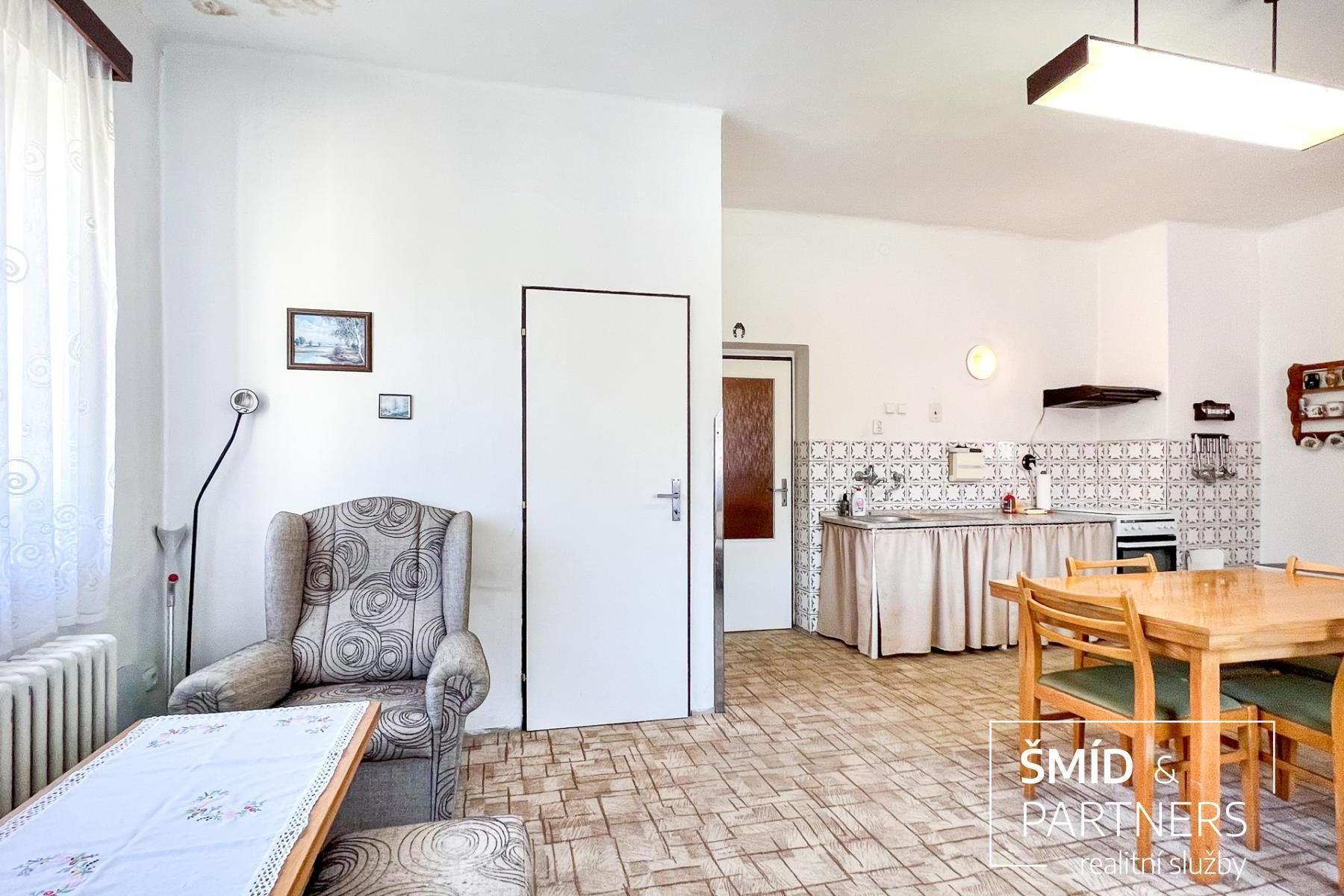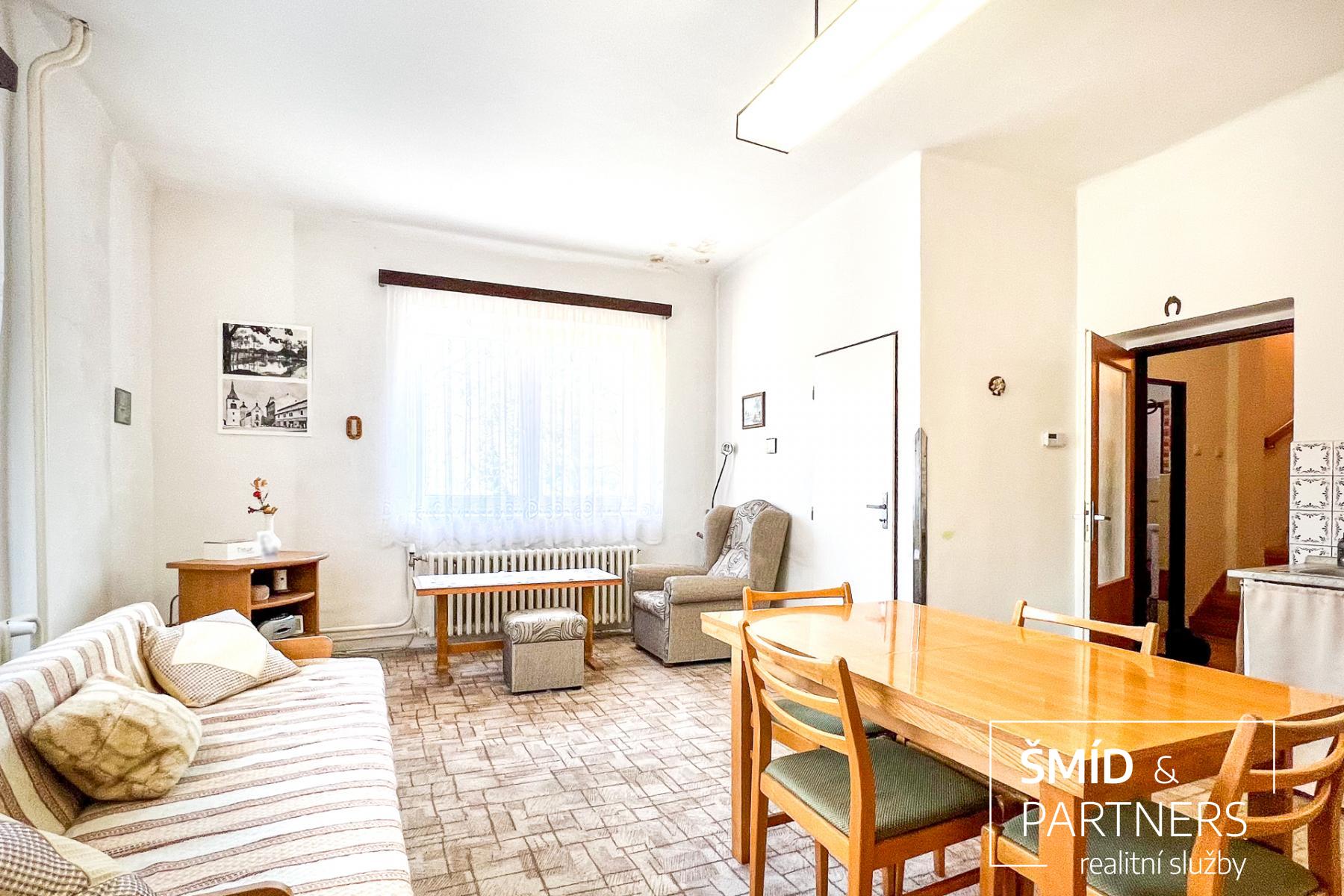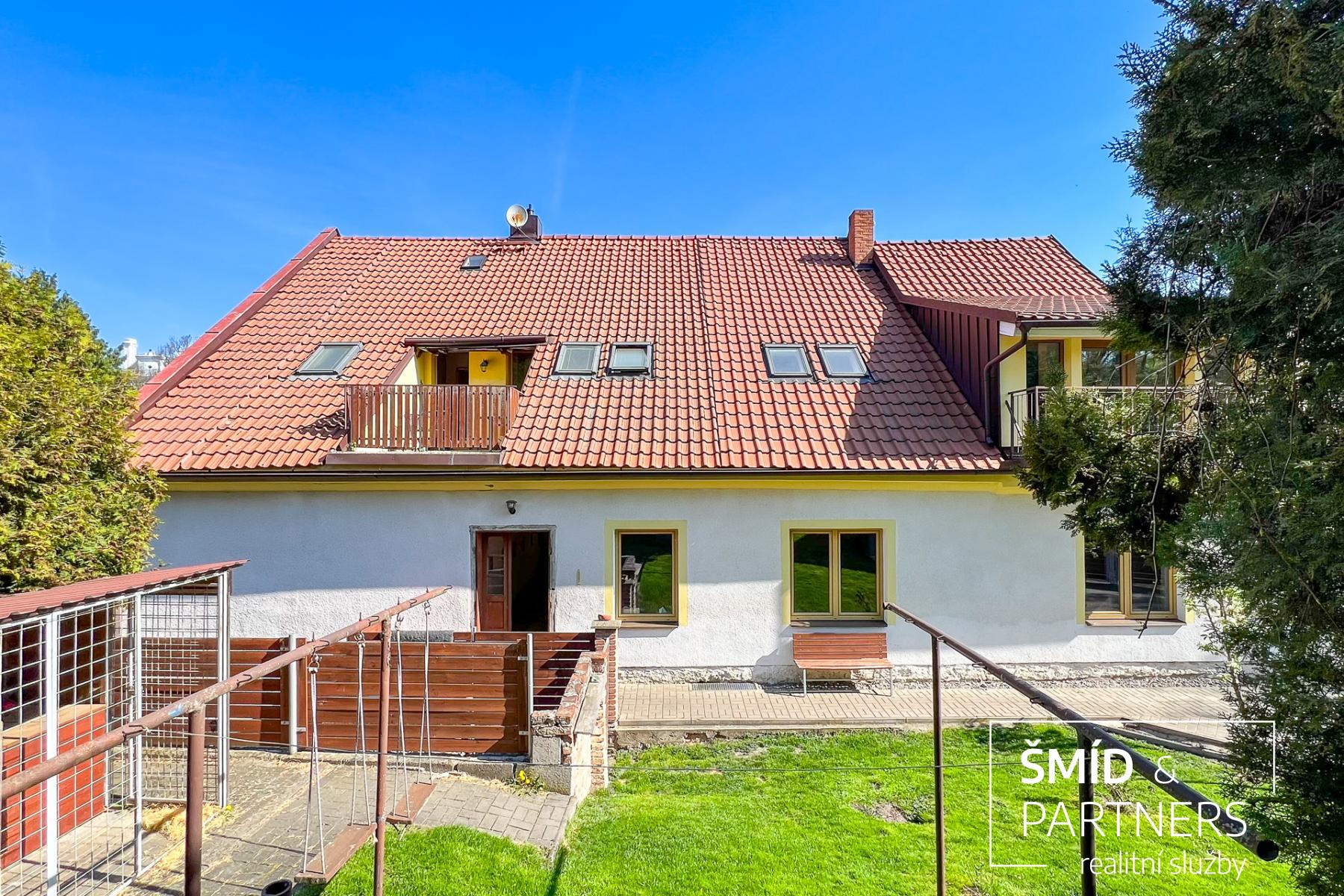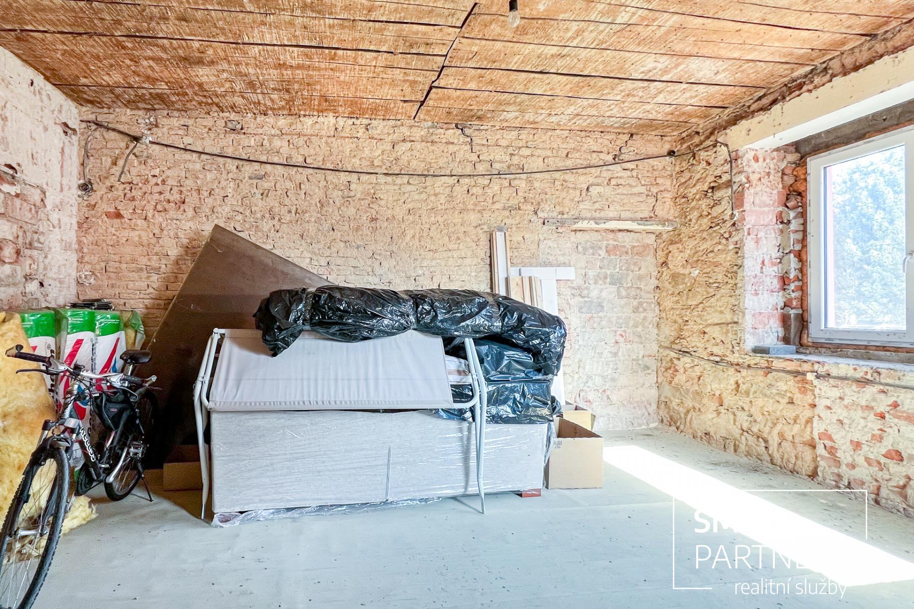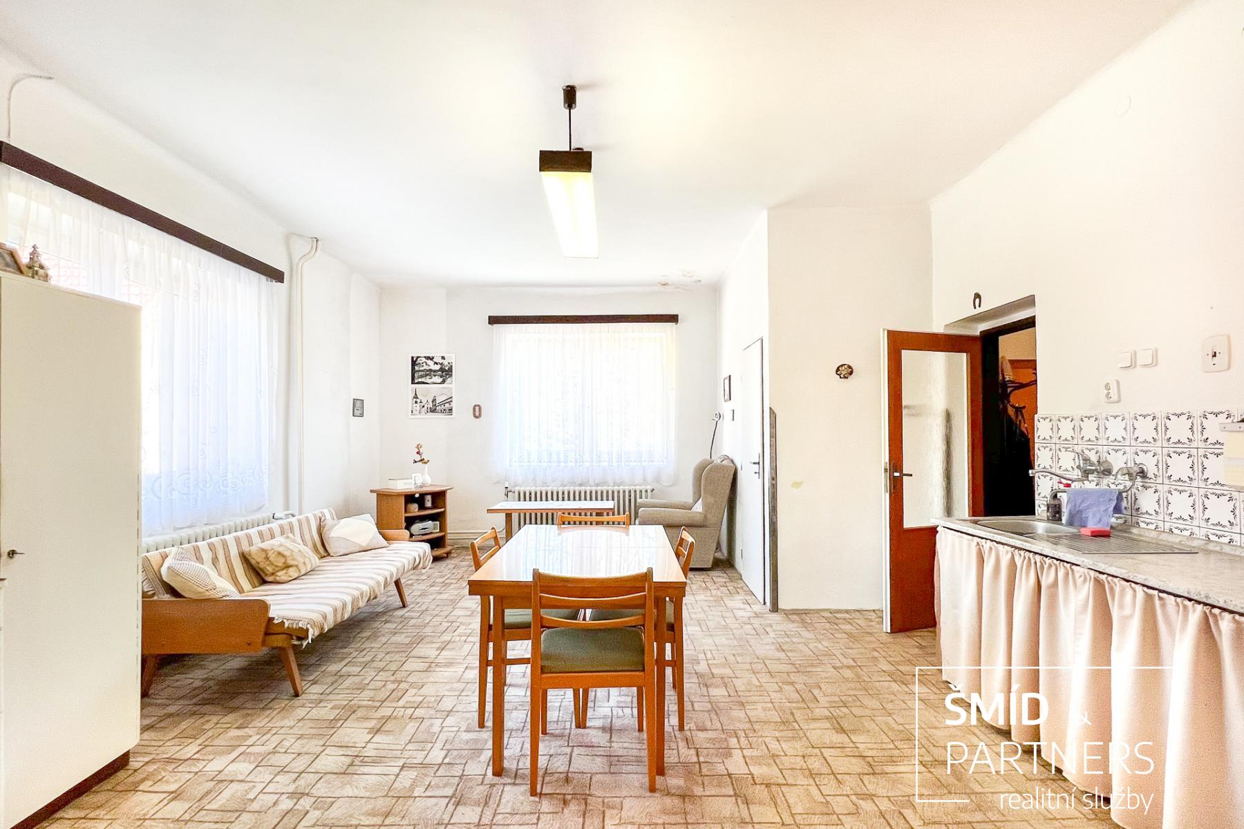 Naše kancelář nabízí k prodeji mimořádně velký venkovský rodinný dům se třemi bytovými jednotkami, zahradou, garáží a rozsáhlými sklepními prostory. Dům pochází nejspíše z první poloviny 19. století a nachází se v těsném sousedství Radimského zámku a jeho rozlehlého parku. Dům je zapuštěn do svahu, a tak je z jeho 1 NP krásný přístup přímo do zahrady, která se celou svou plochou nachází za domem. Za jedním ze vstupů do domu z klidné ulice se v jeho přízemí nachází rozsáhlé technické prostory s dílnou, garáž a masivní sklepní prostory s klenutými stropy. V této části by bylo možné v případě potřeby vybudovat další bytovou jednotku. Ta by tak disponovala i samostatným bočním vstupem a její dominantou by byly nádherné valené a křížové klenby. Z přízemí vede centrální schodiště do 1NP, kde se nacházejí dva samostatné byty. Jeden, menší, o ploše 67 m2 je v původním stavu zhruba ze 70./80. let 20. stol. a dispozičně je řešen jako 2+kk. Druhý z bytů na tomto podlaží je momentálně připraven na kompletní rekonstrukci, takzvaně na cihlu, a tedy s možností dispozičních změn. Jeho plocha činí 115 m2 a výška podlah je ve stejné úrovni jako zahrada. Úplně se zde nabízí při rekonstrukci použít francouzská okna a dodat tak tomuto bytu benefit přímého vstupu na zahradu.