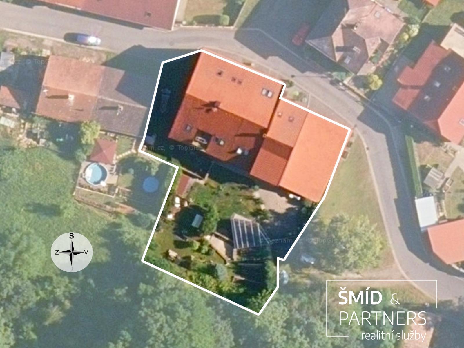 obec Radim - RD se třemi bytovými jednotkami 67m2, 115m2, 166m2, garáží a zahradou