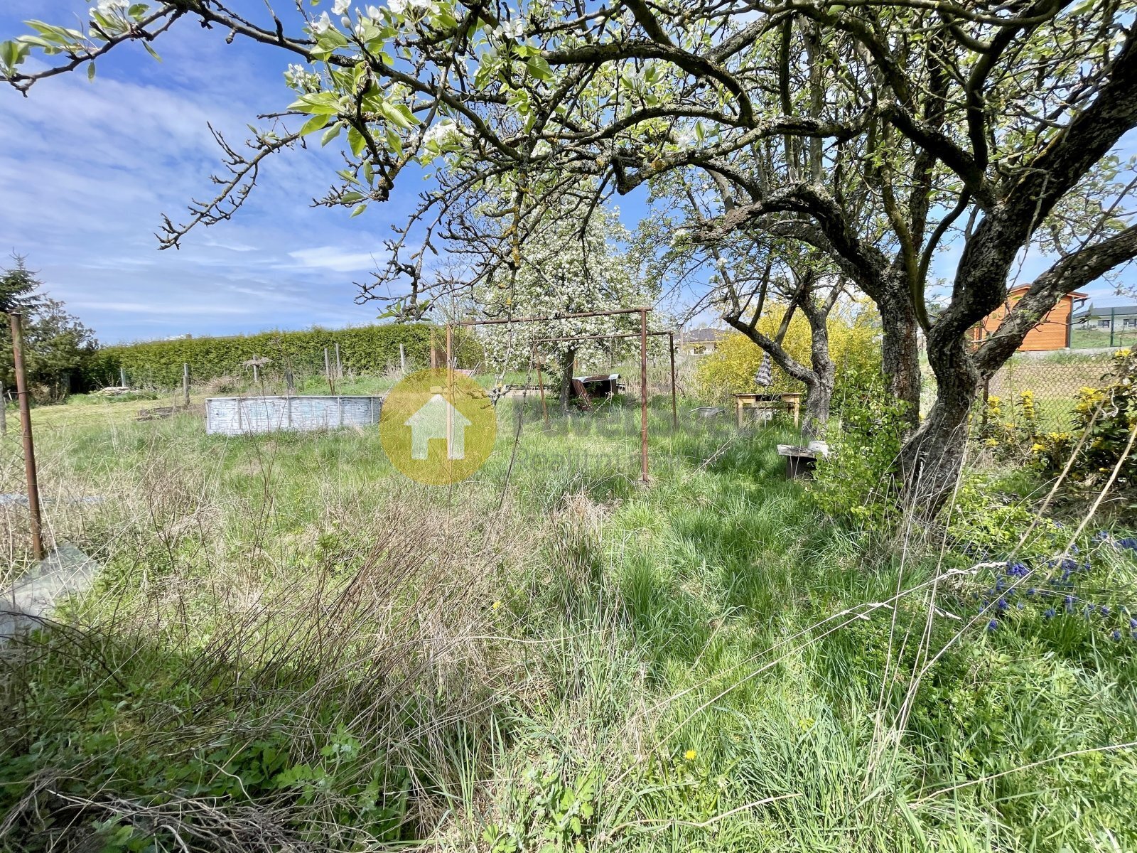Pozemek je mírně svažitý s krytým stáním pro osobní automobil, za domem na zahradě soukromé posezení.