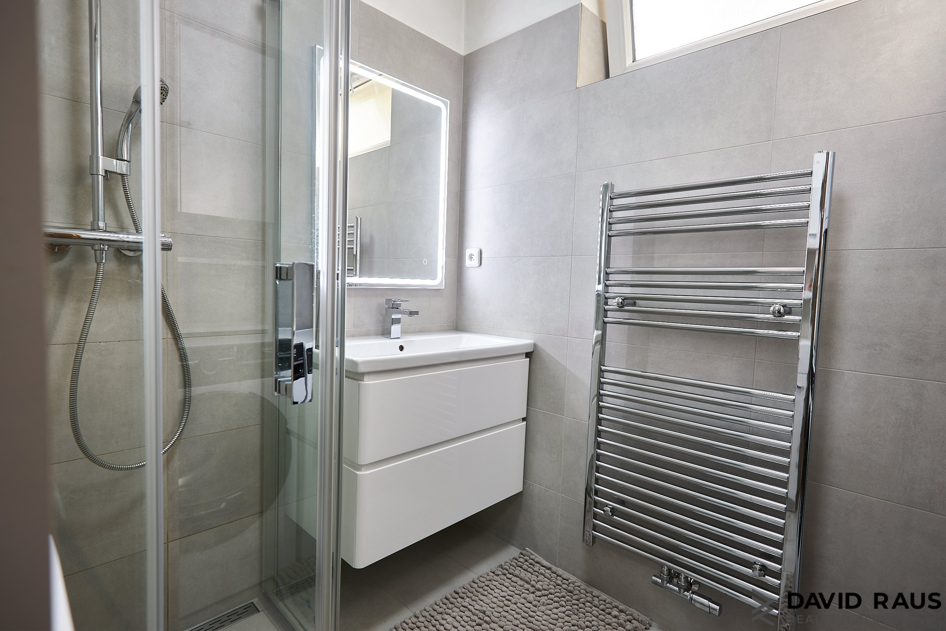 Koupelna prošla kompletní rekonstrukcí, která zahrnovala nejen nové obklady a vybavení, ale také modernizaci technických prvků. Je zde instalován sprchový kout, praktický žebříkový radiátor a připravený prostor pro pračka a sušičku umístěné nad sebou. Součástí rekonstrukce byla také instalace nového plynového kondenzačního kotle značky Baxi, včetně vyvložkování komínu, což zajišťuje spolehlivý a úsporný provoz. Výhodou koupelny je také okno umístěné přibližně ve výšce dvou metrů, které umožňuje přirozené větrání a přívod denního světla.